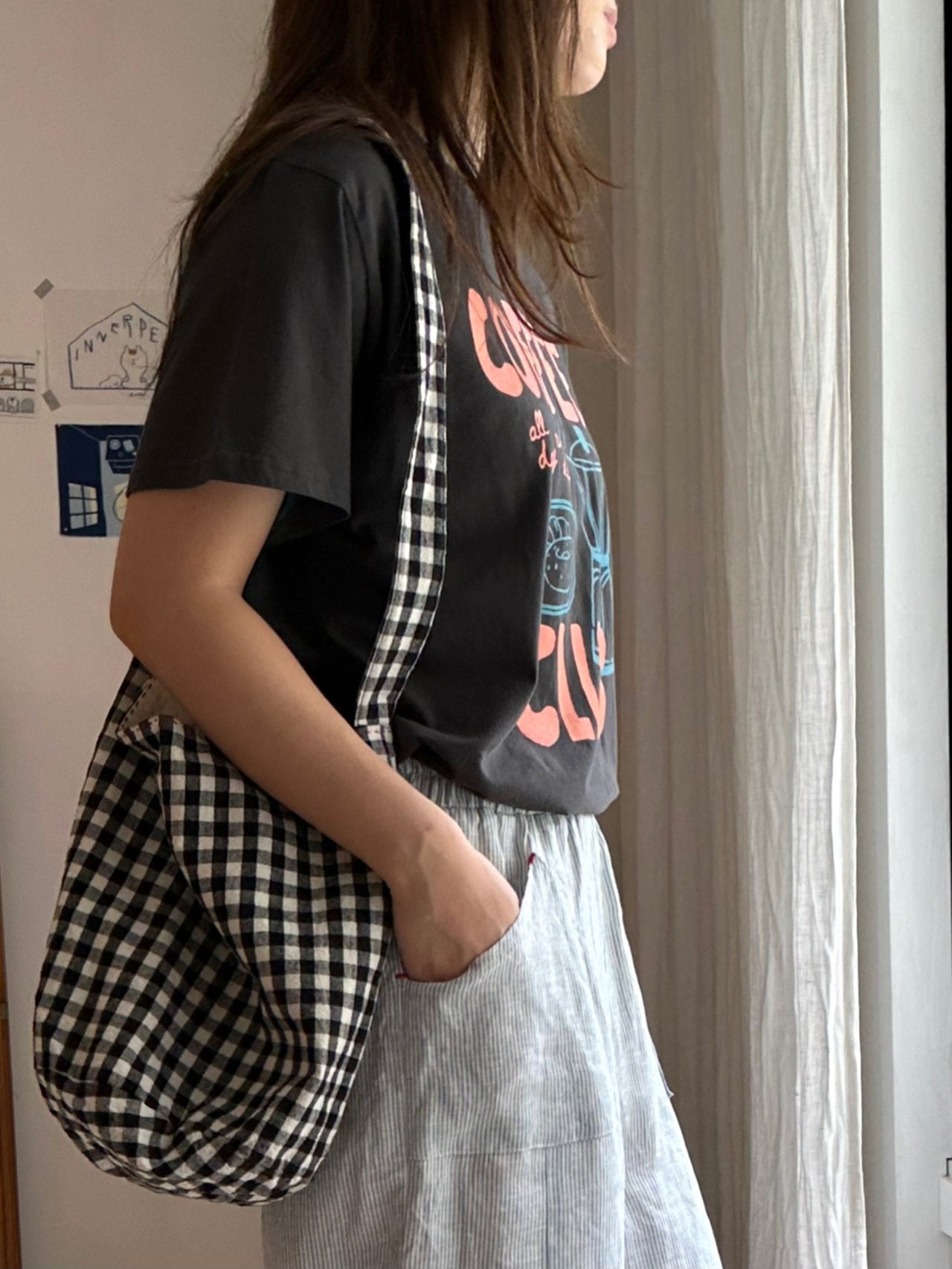 Love the trousers - its so comfortable! The checkered fabric looks great too.- Easy to pair and so versatile!
