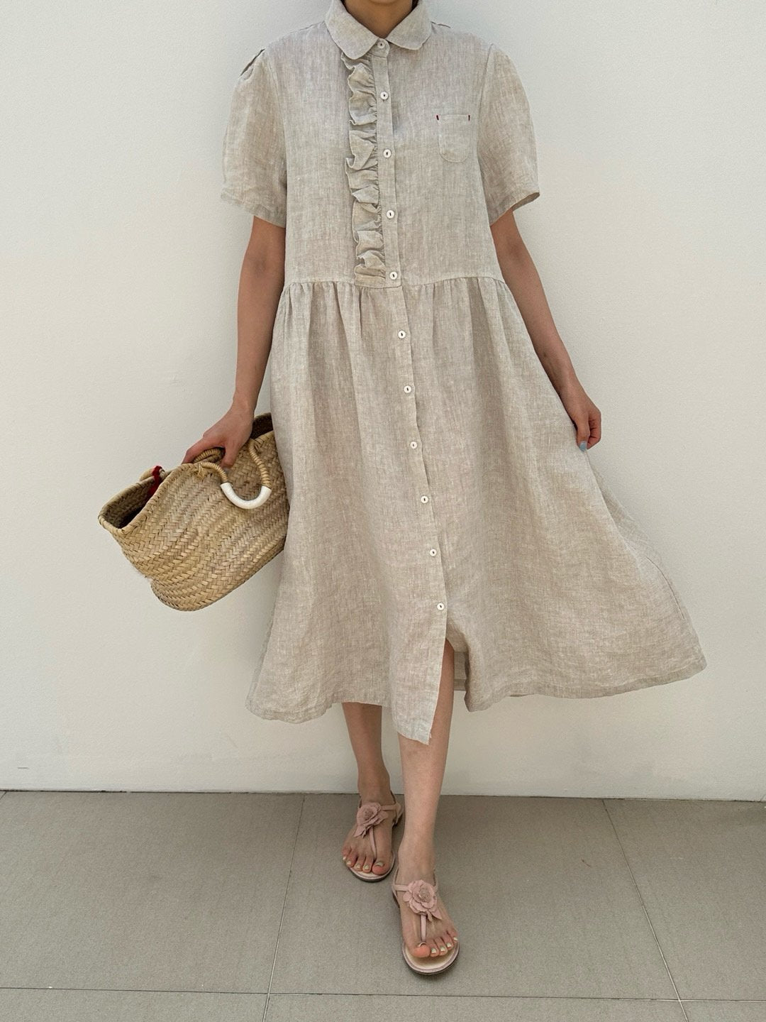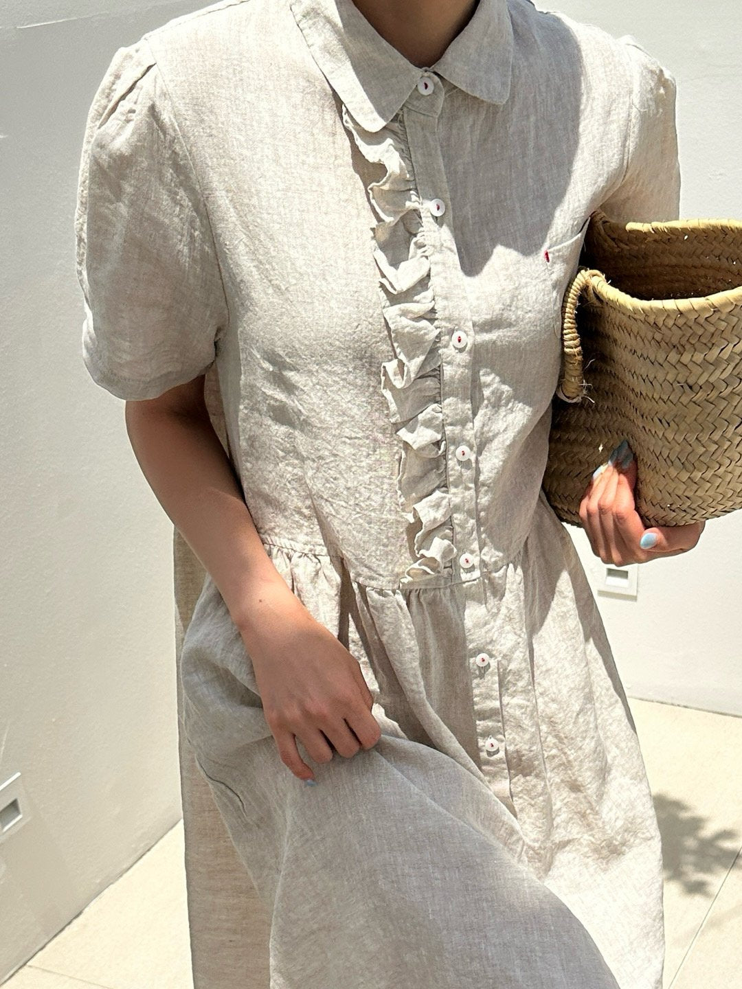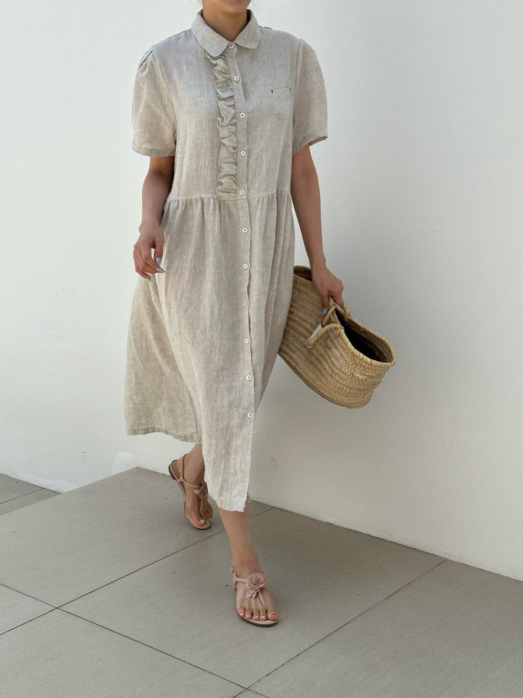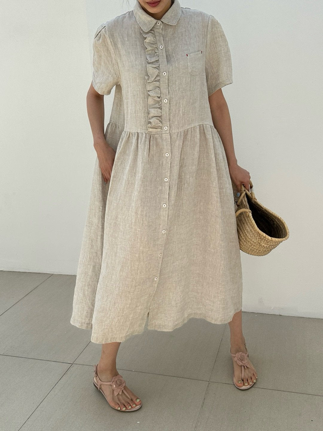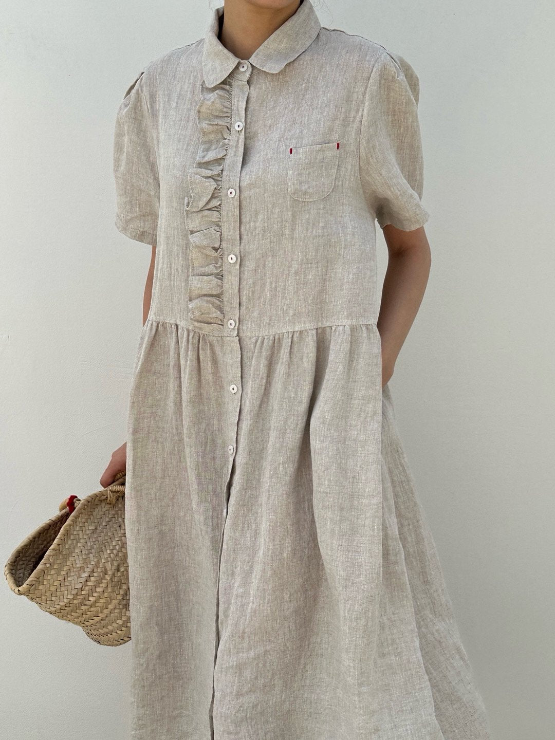 Ruffle Puff Linen Dress