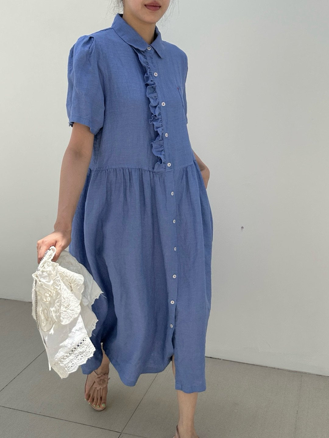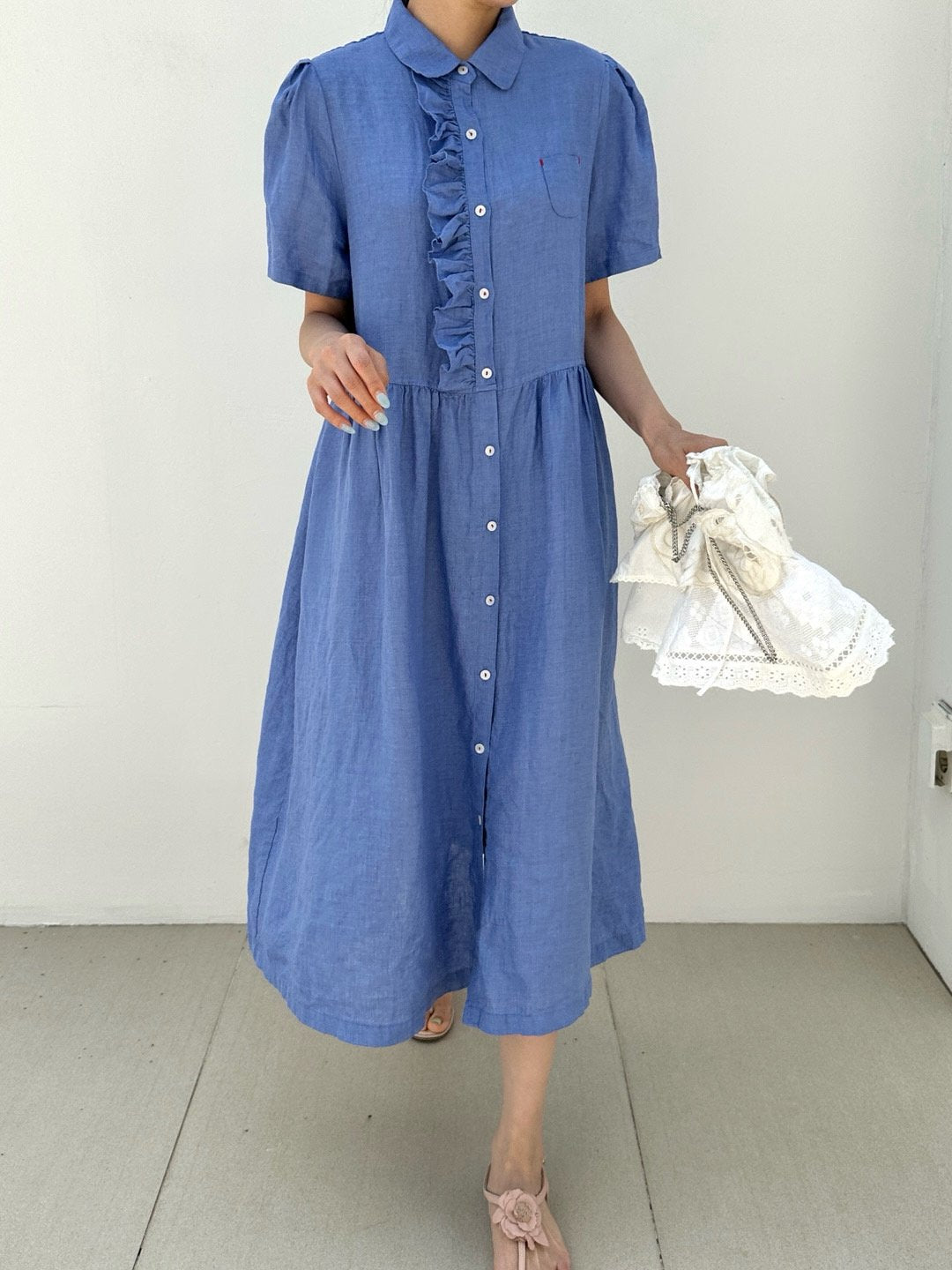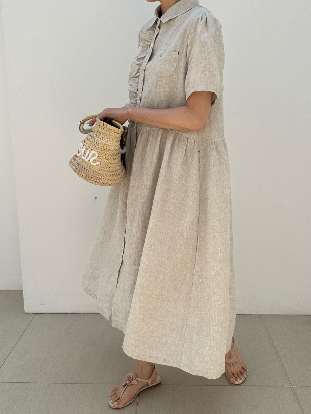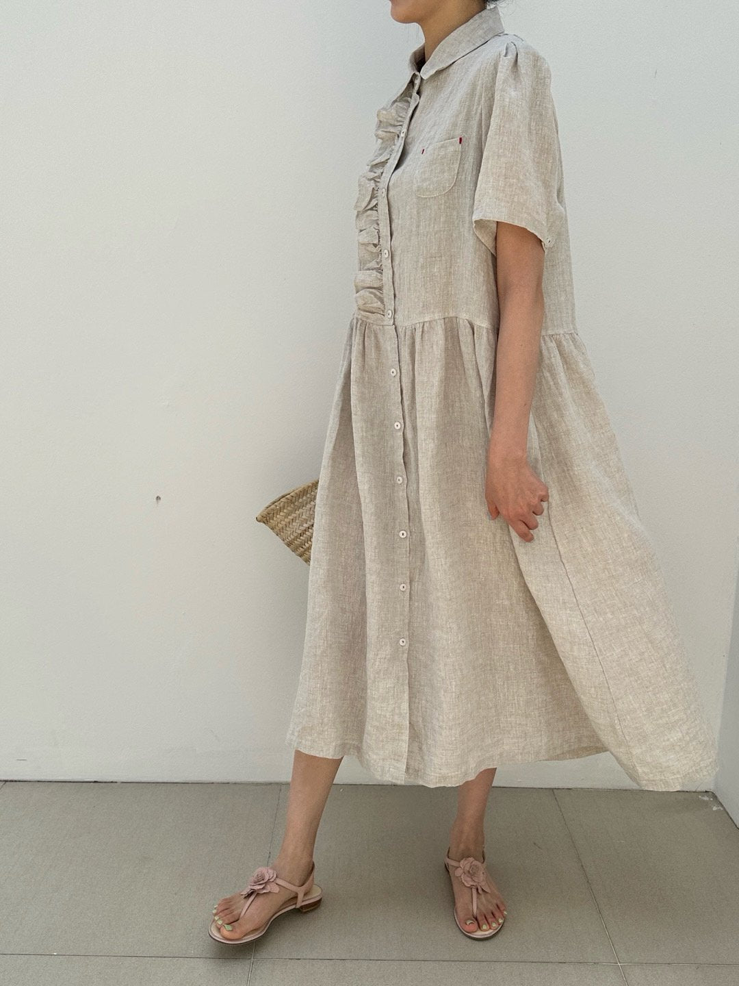 Ruffle Puff Linen Dress