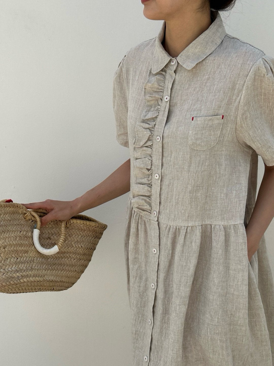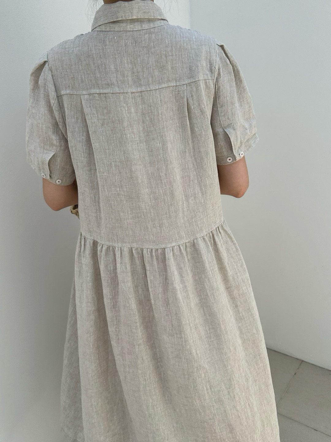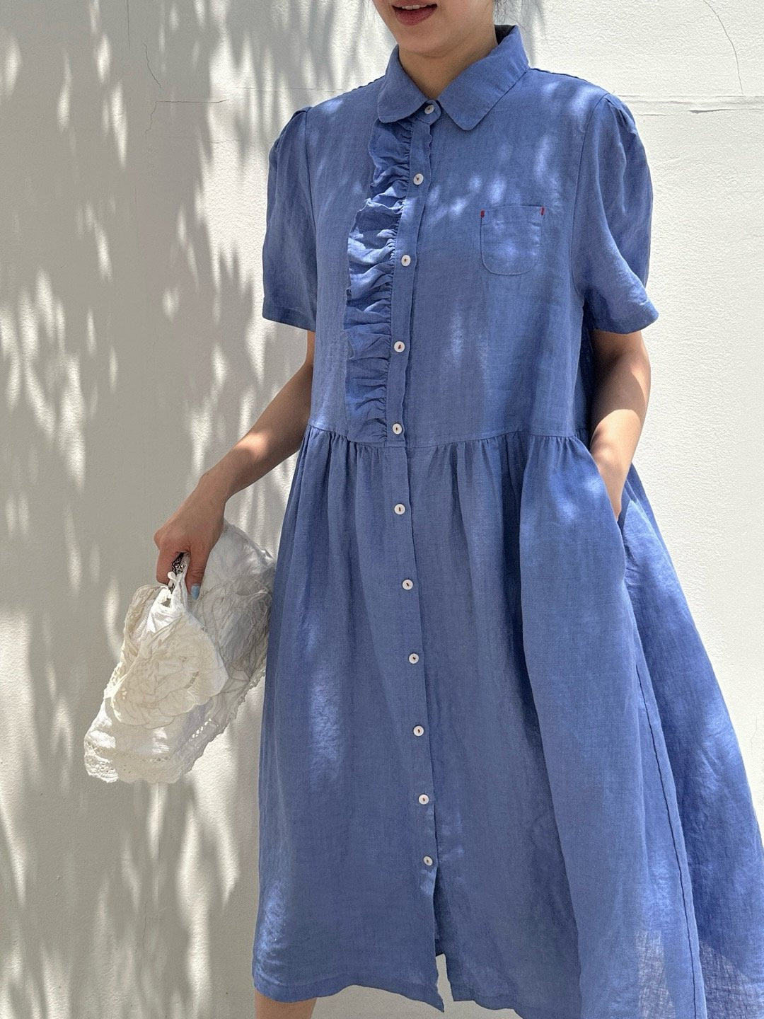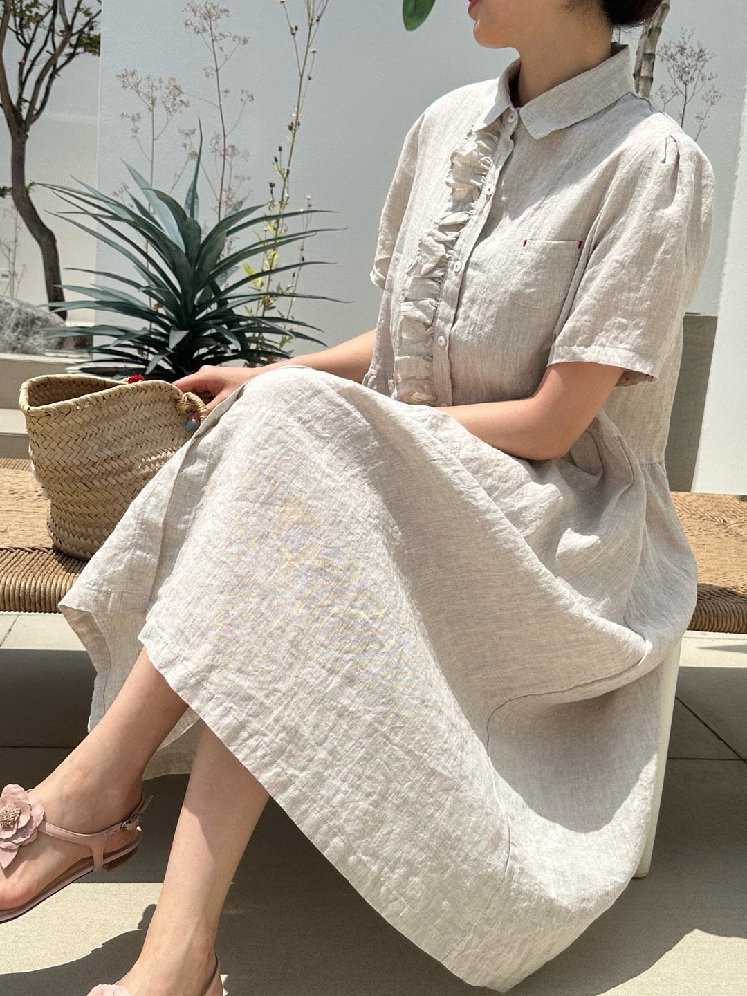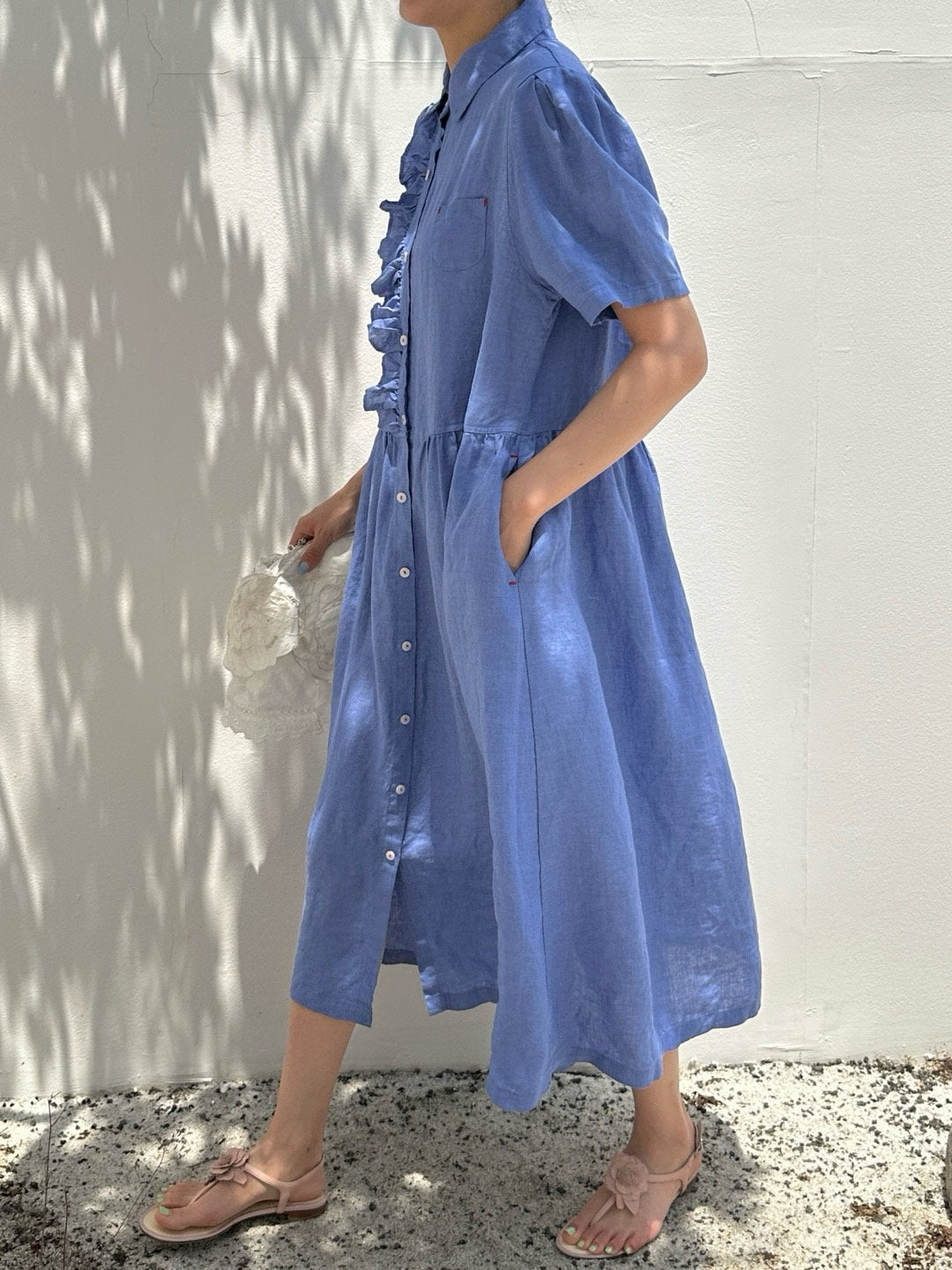 Ruffle Puff Linen Dress