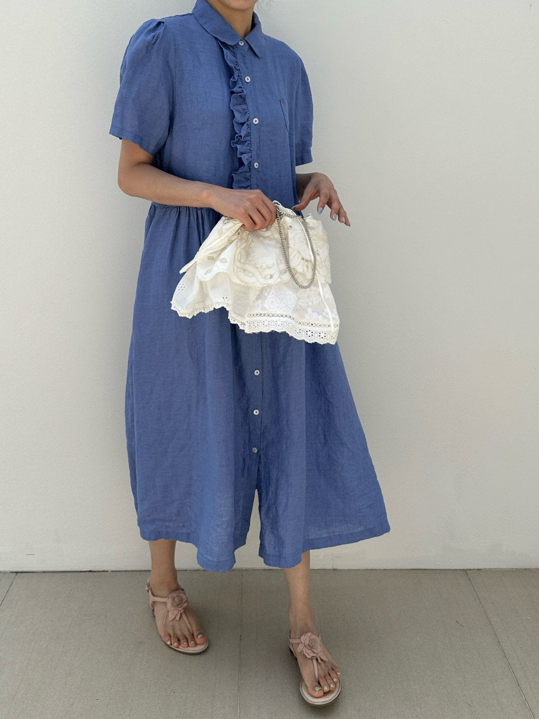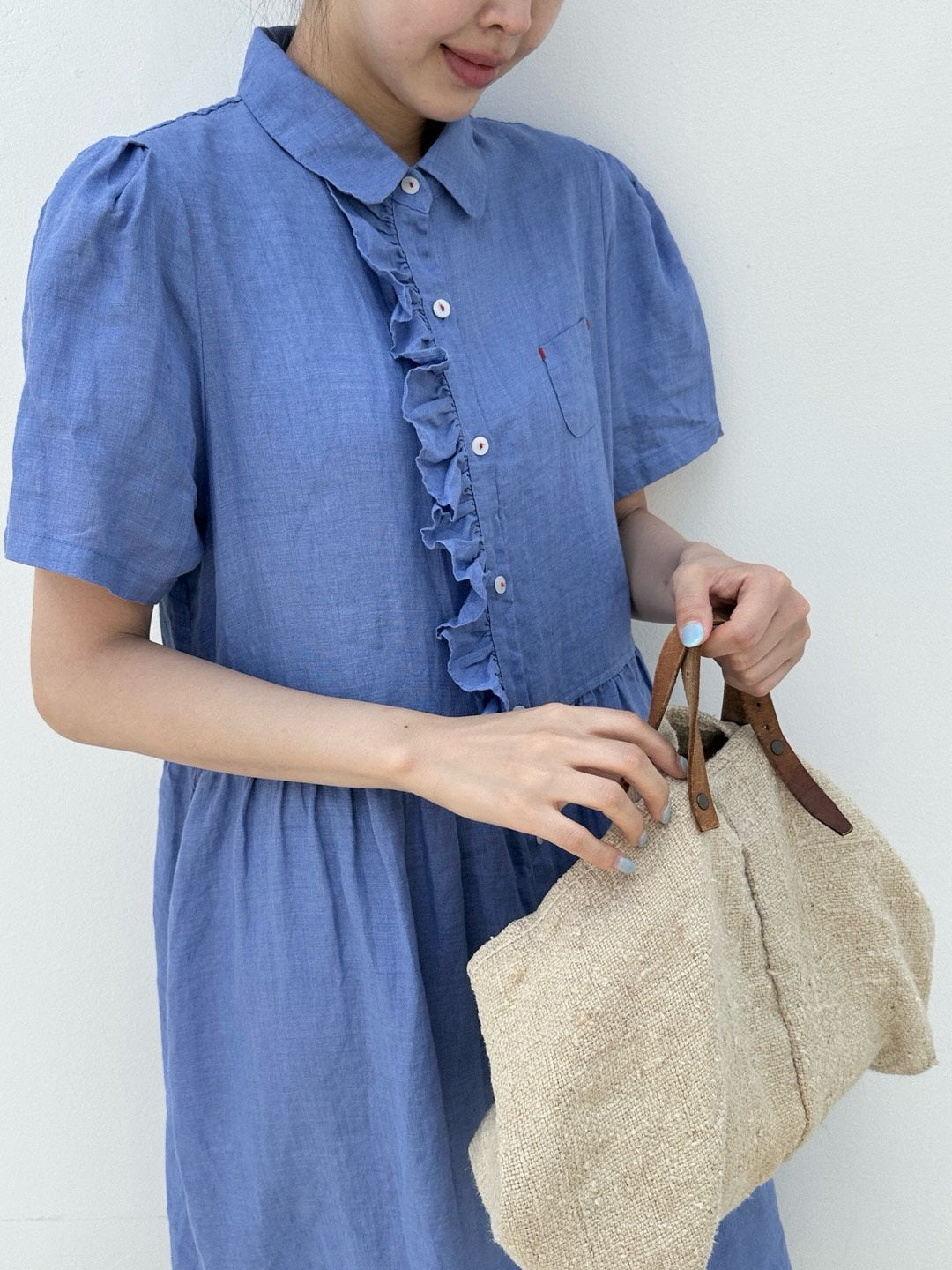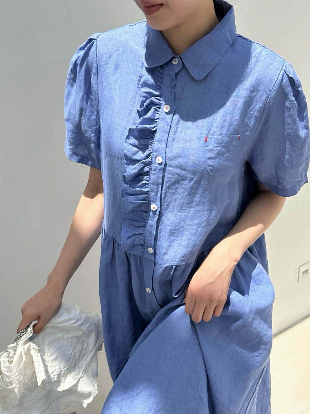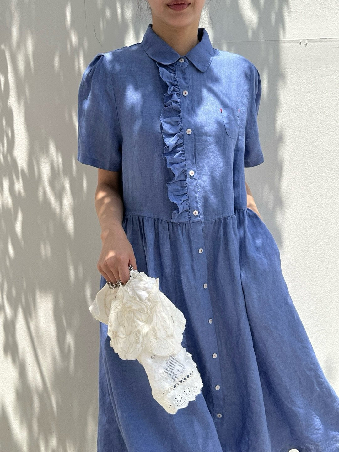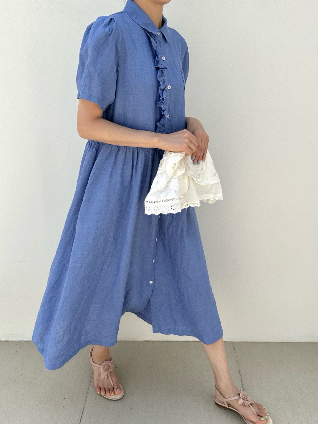 Ruffle Puff Linen Dress
