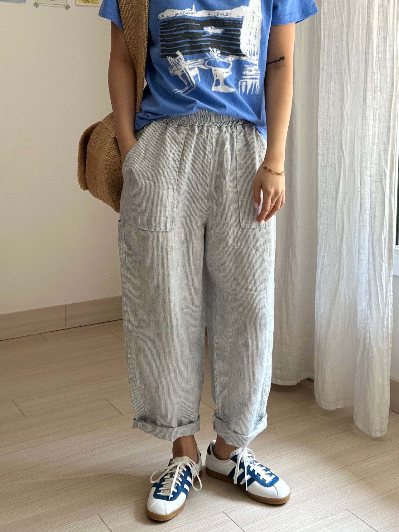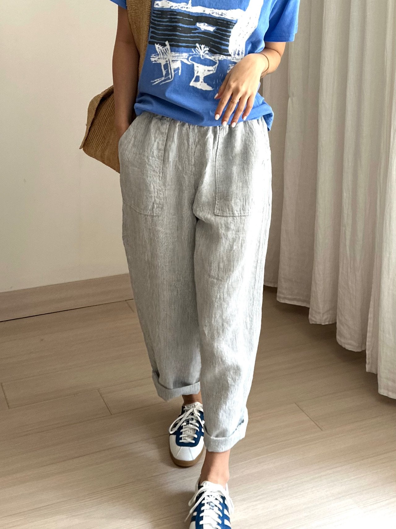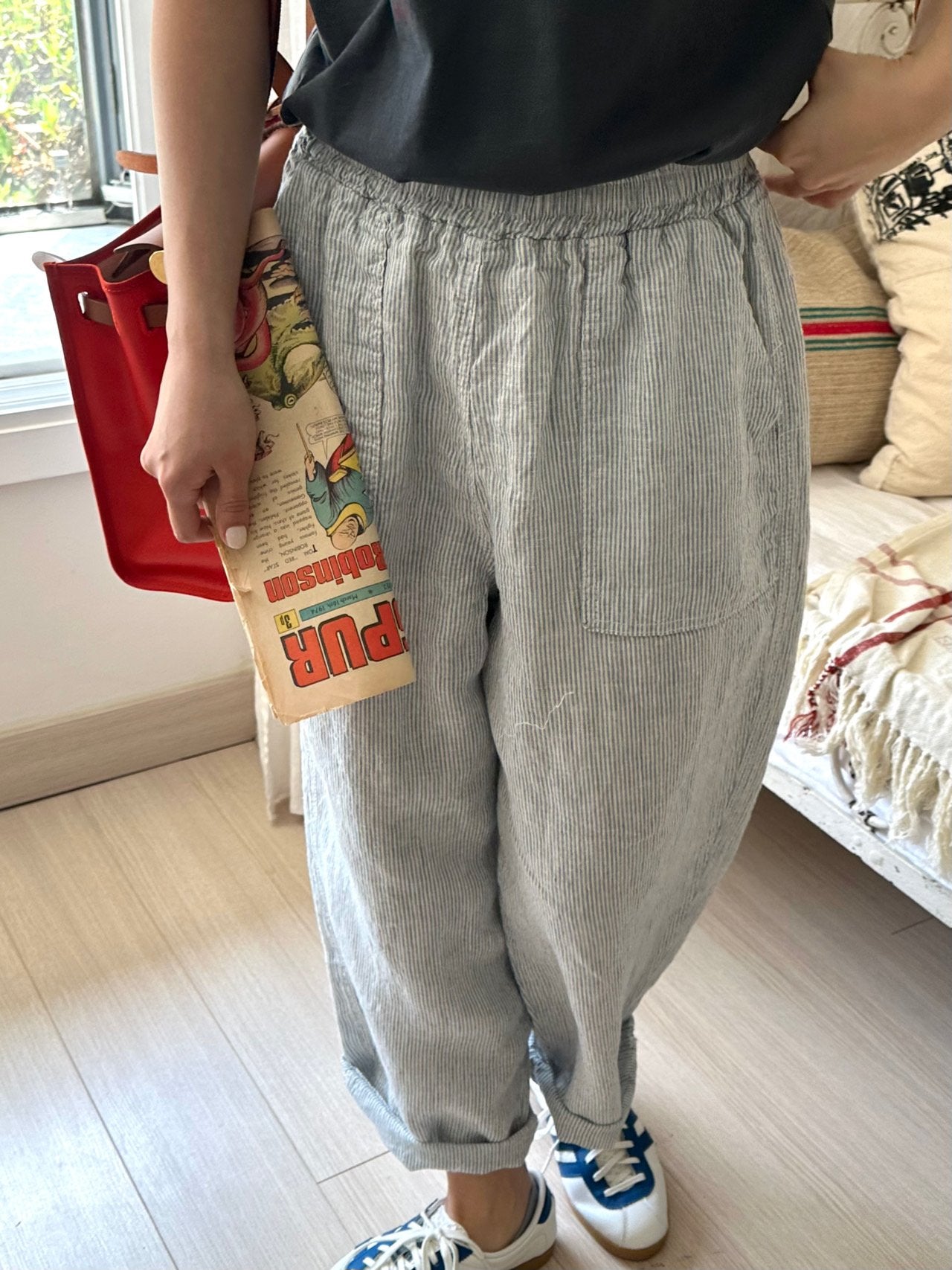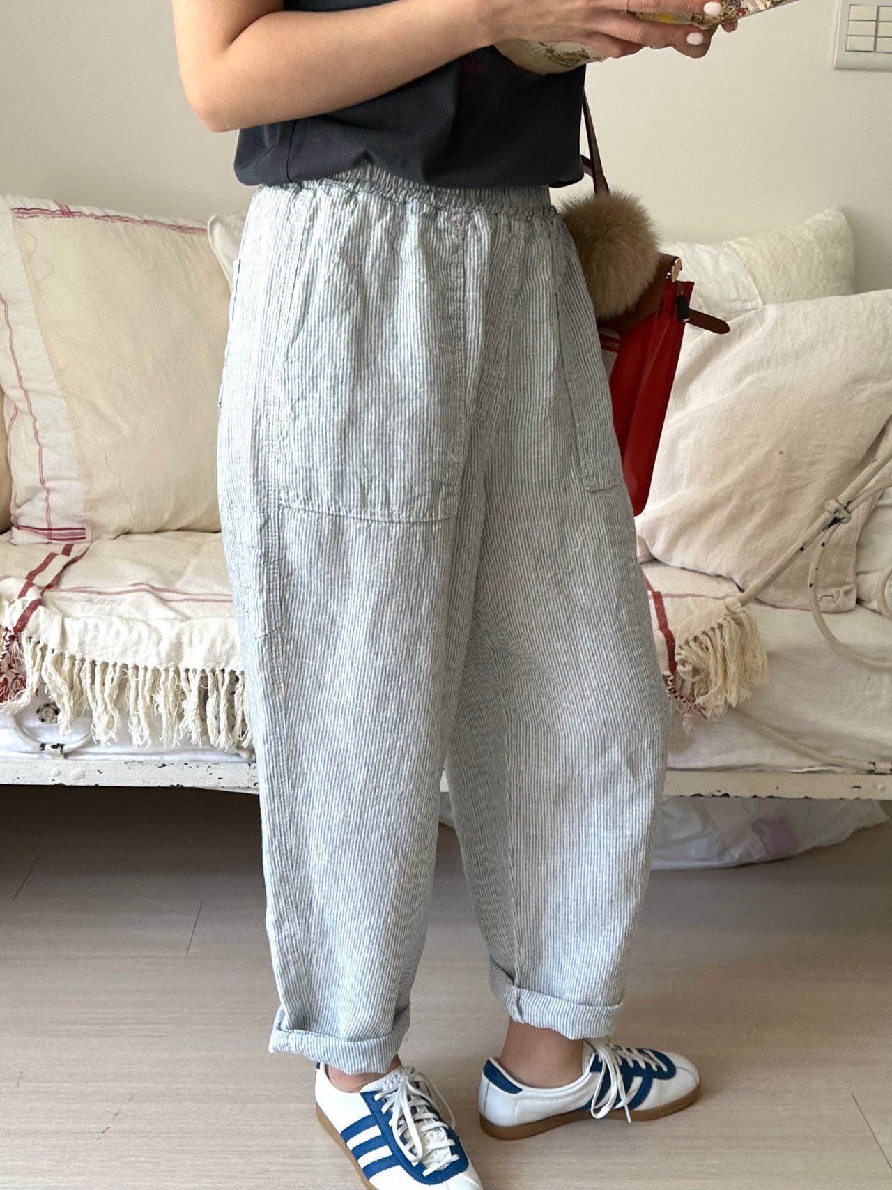 Love the trousers - its so comfortable! The checkered fabric looks great too.- Easy to pair and so versatile!