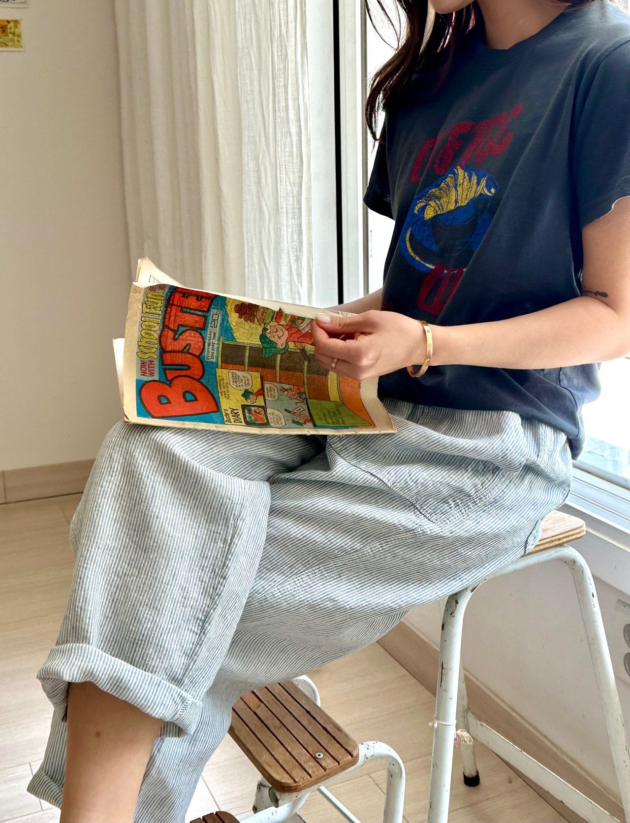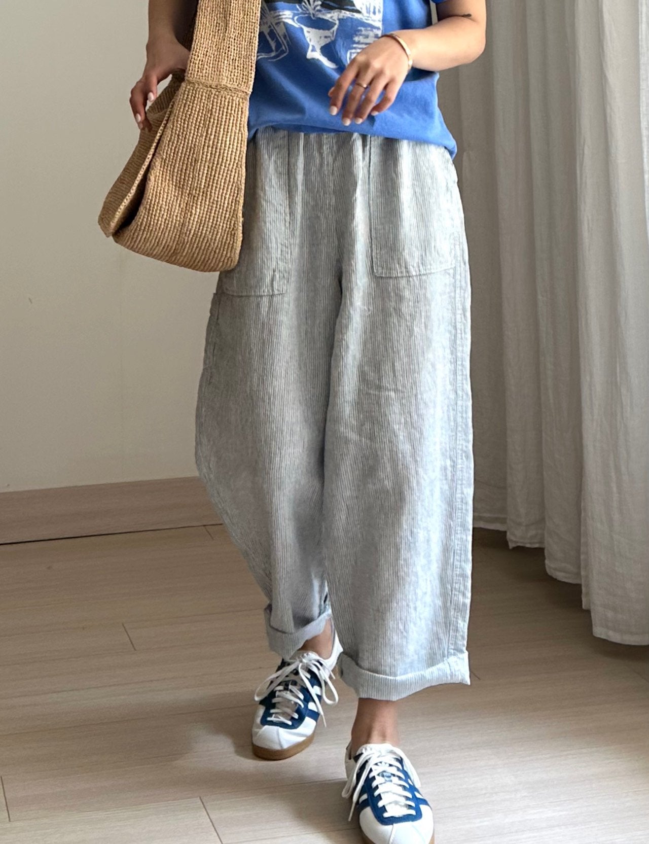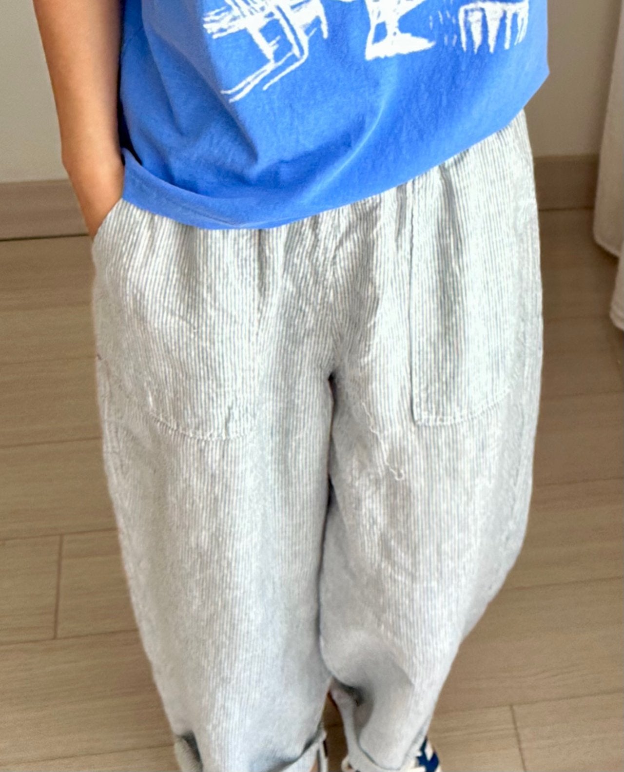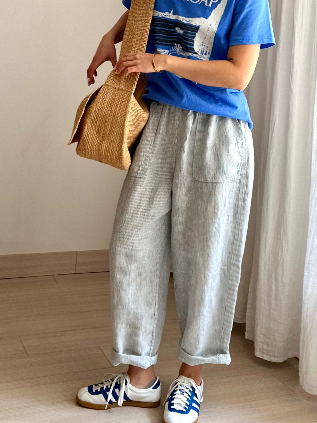 Love the trousers - its so comfortable! The checkered fabric looks great too.- Easy to pair and so versatile!