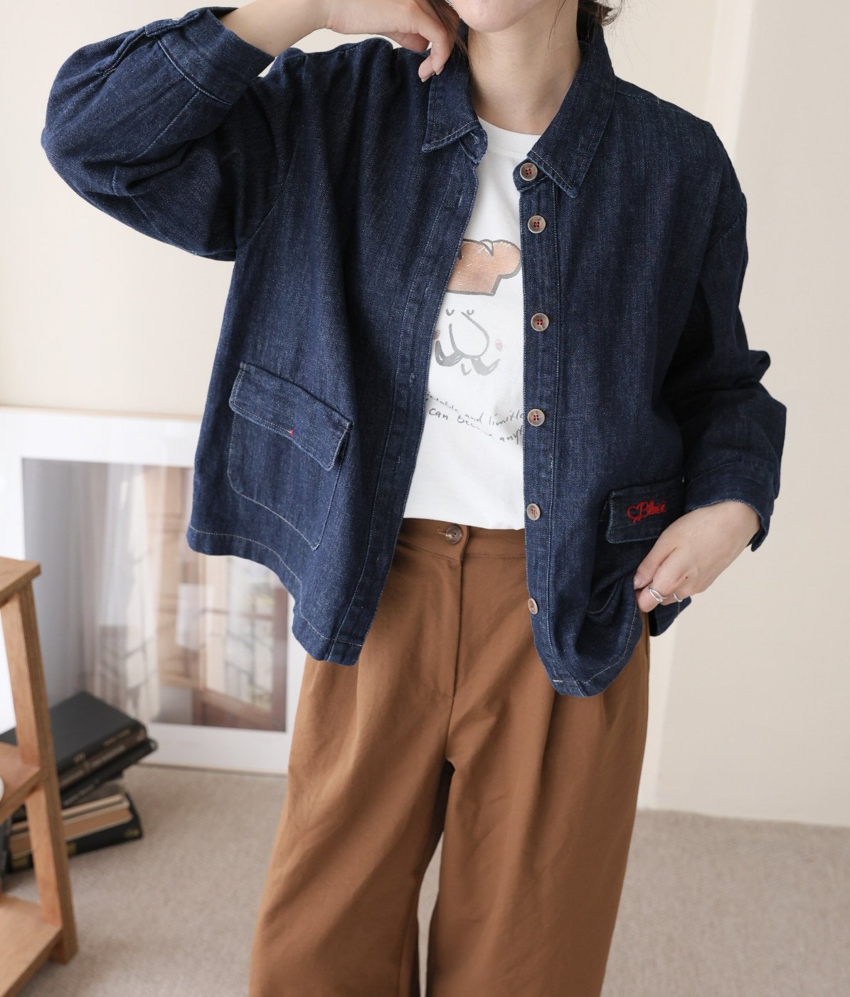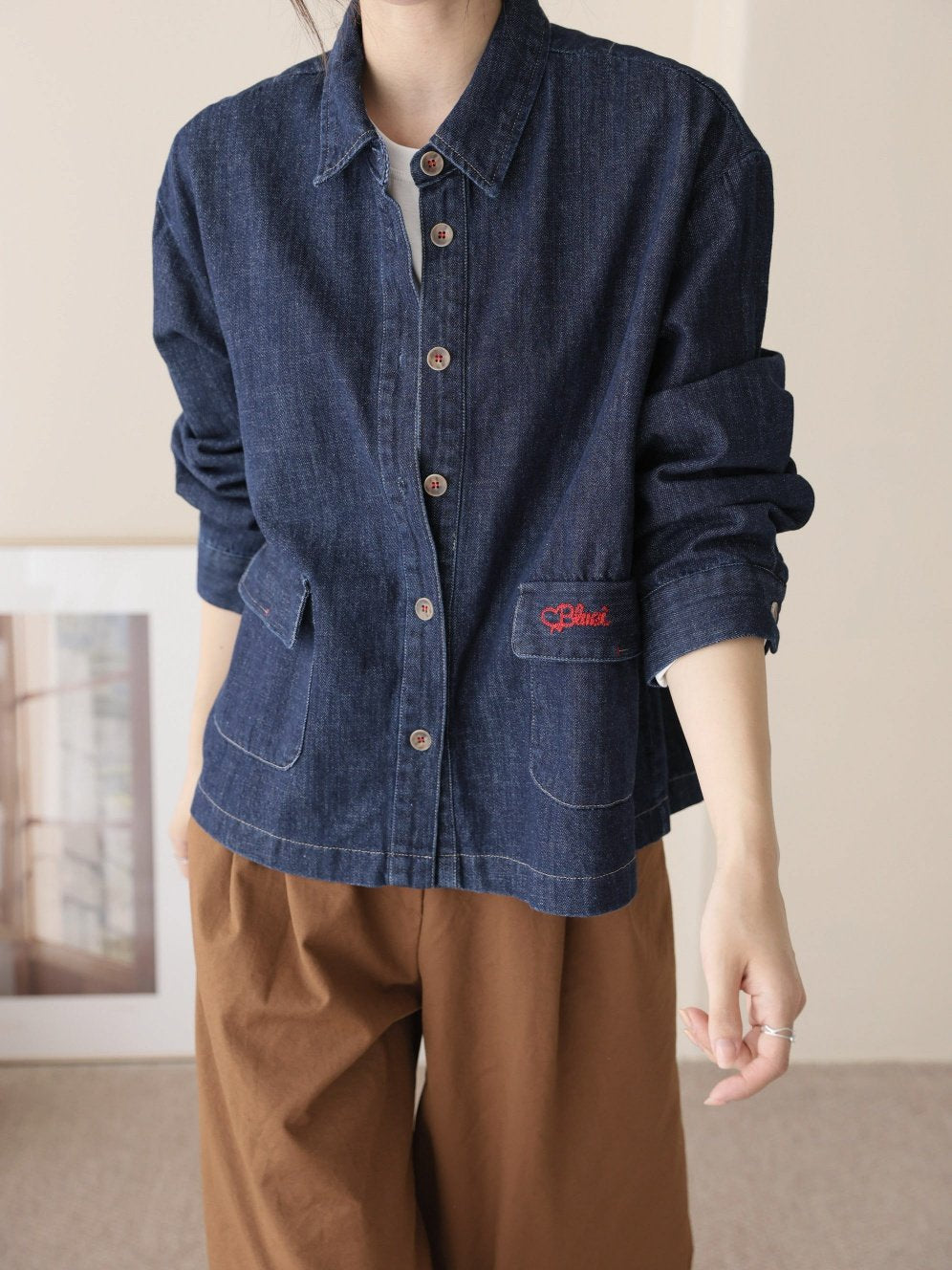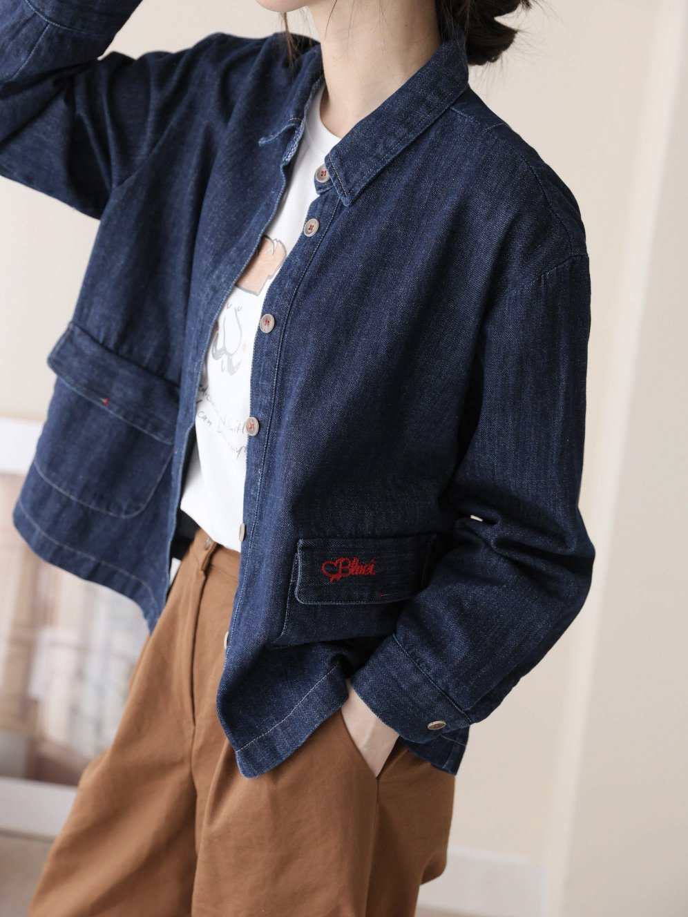 Red Embroidered Pocket Denim Jacket
