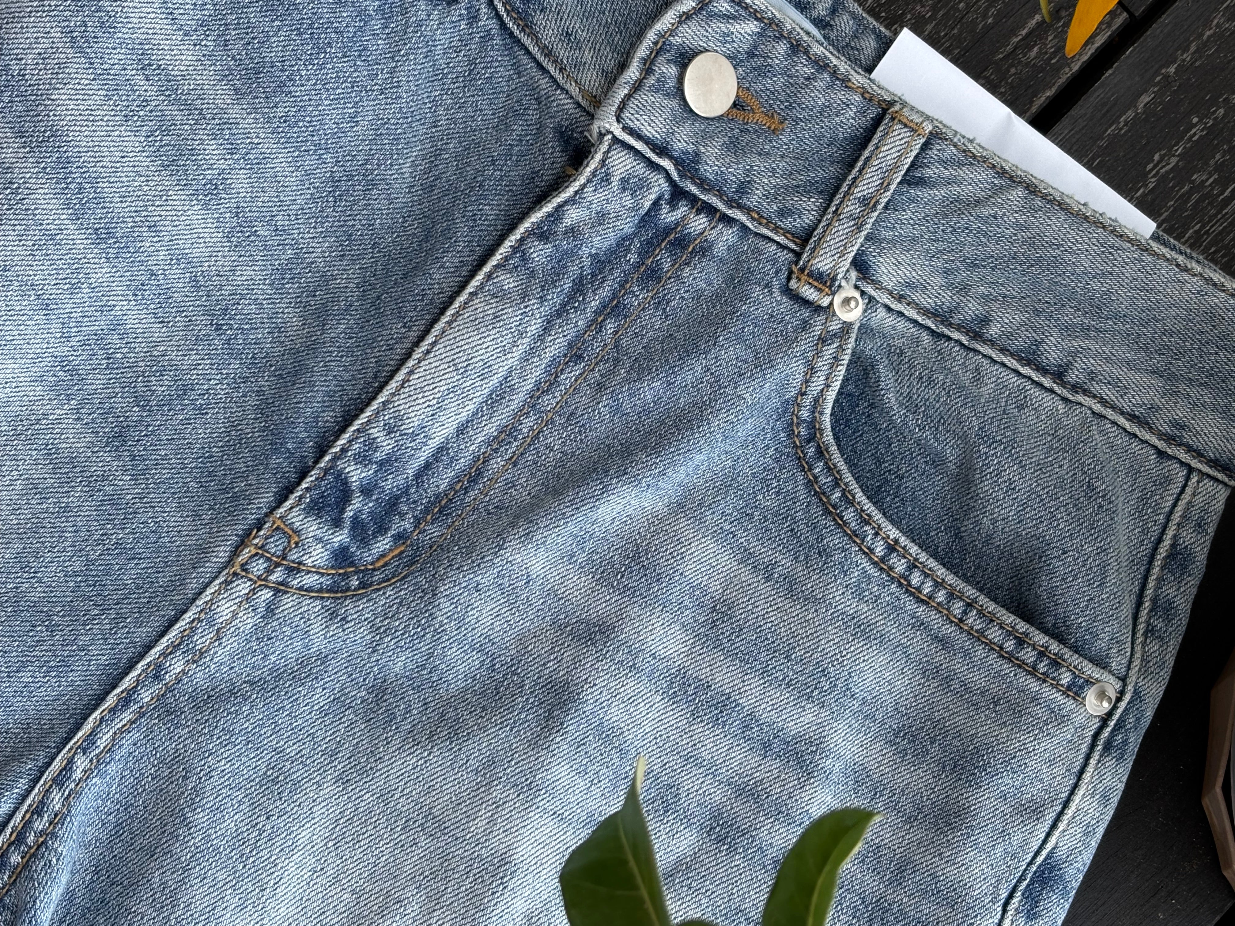 These denim pants **run one size larger** than standard sizing. We recommend choosing **S if you usually wear M, and M if you usually wear L**.