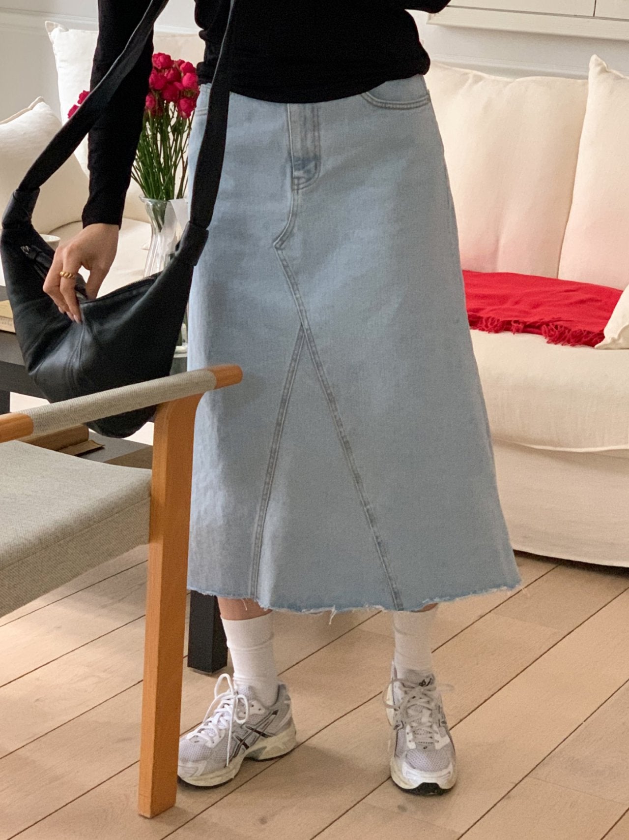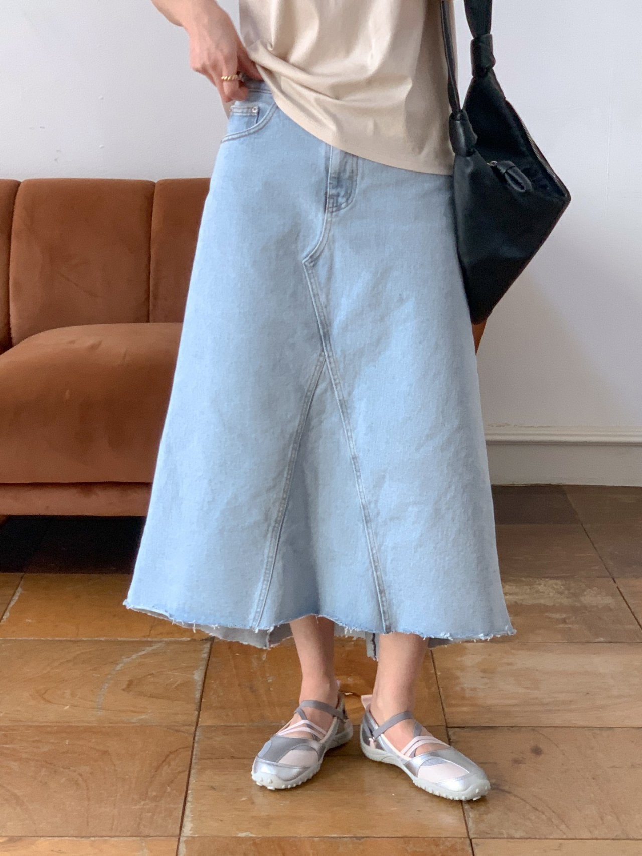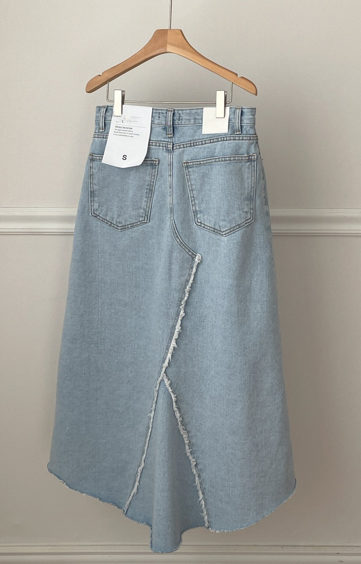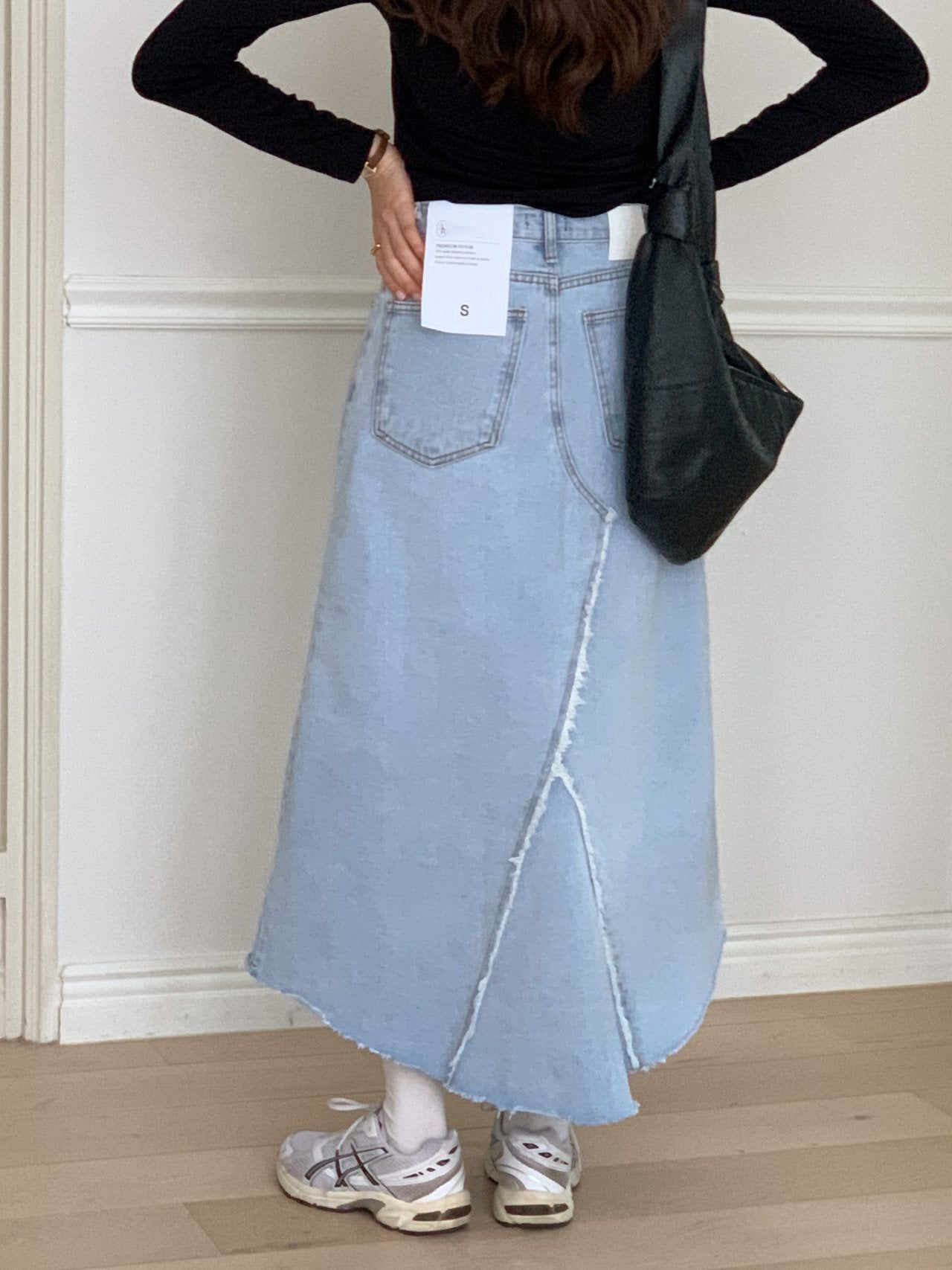(Sale) Unbalanced Cut Denim A-line Raw cut Skirt