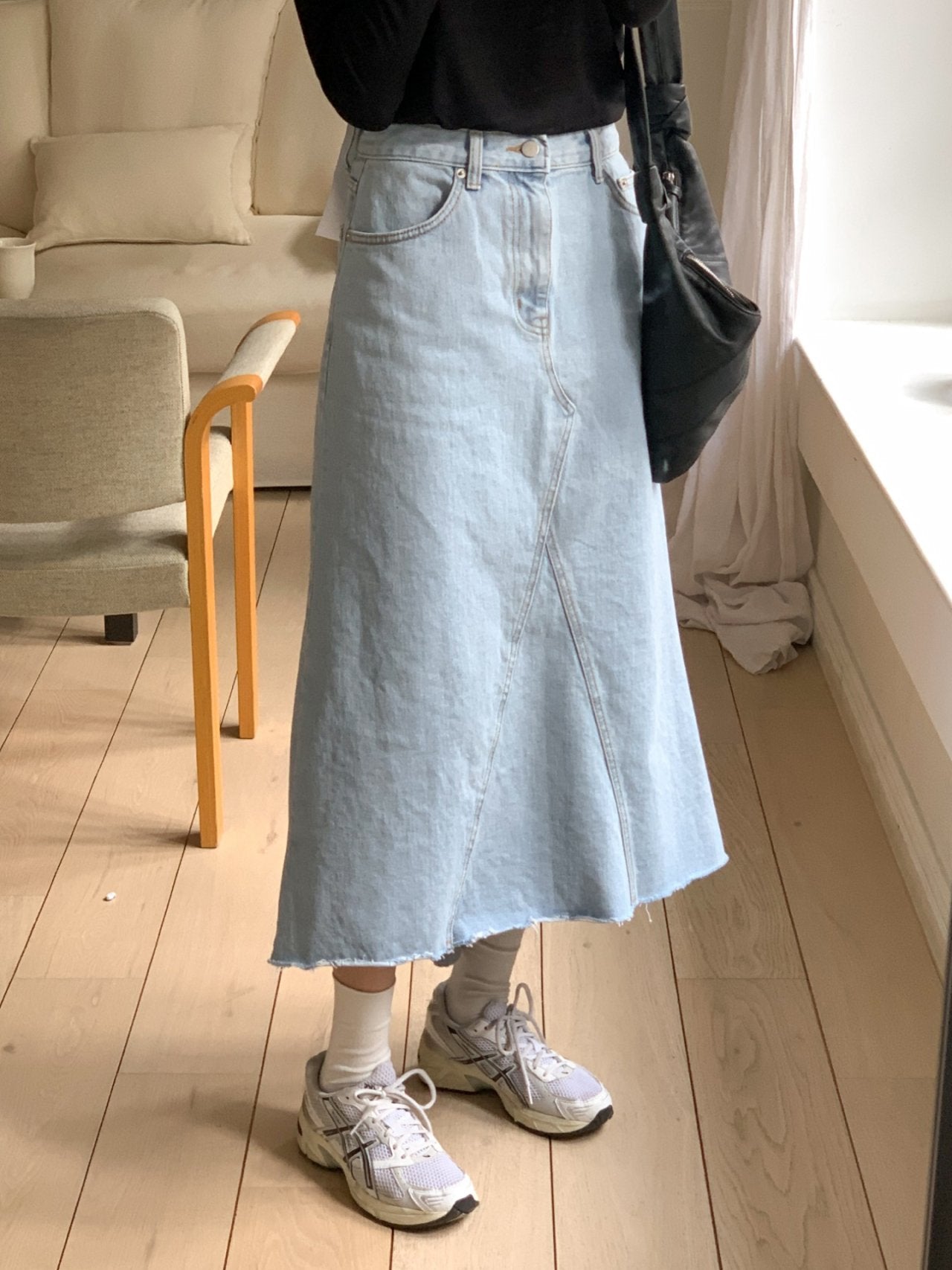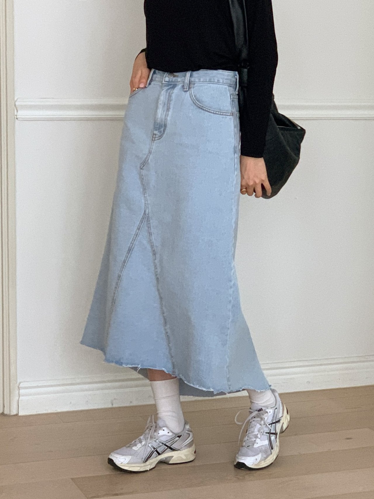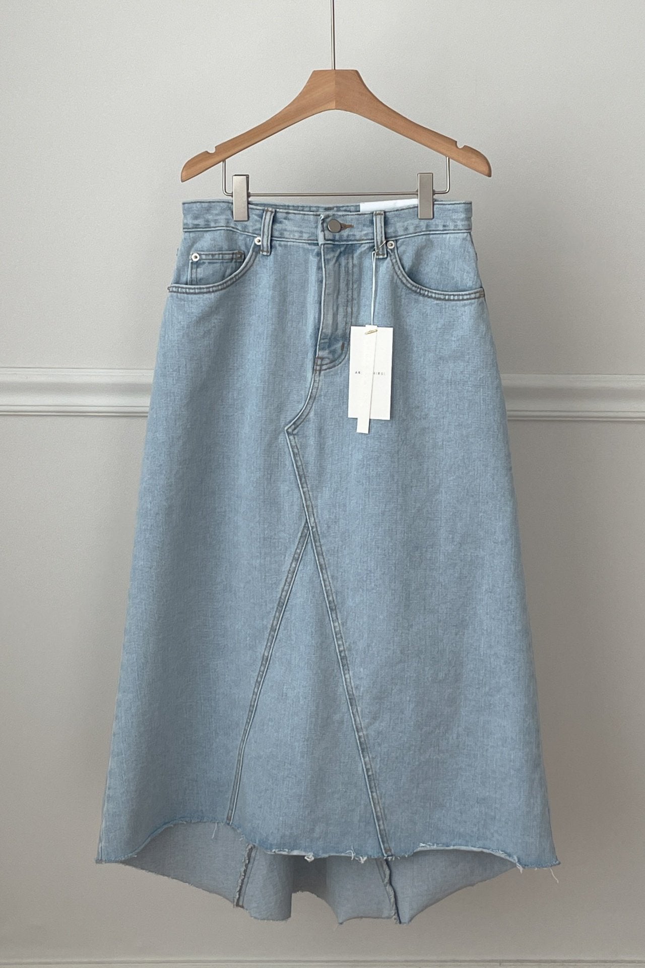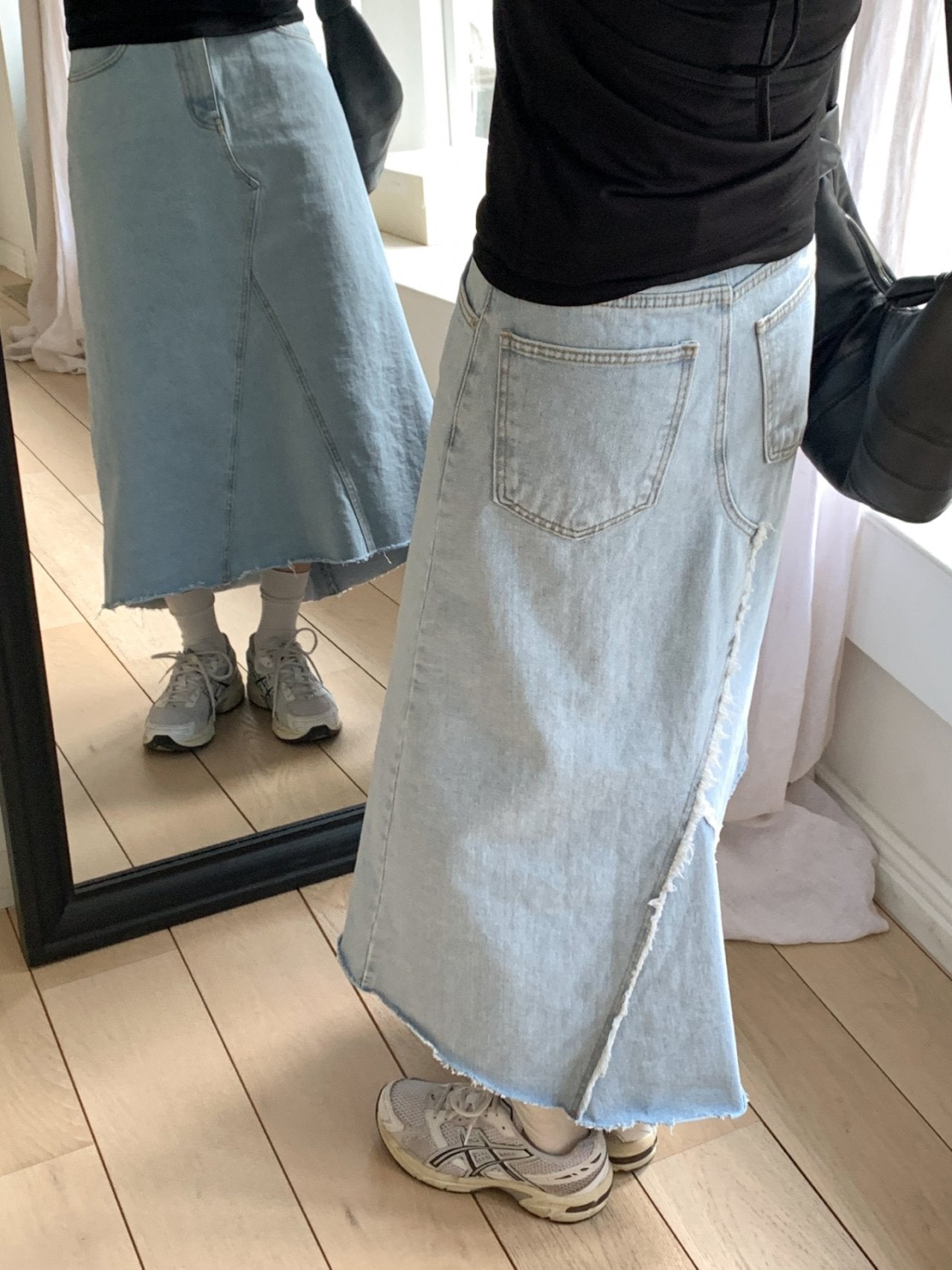 (Sale) Unbalanced Cut Denim A-line Raw cut Skirt