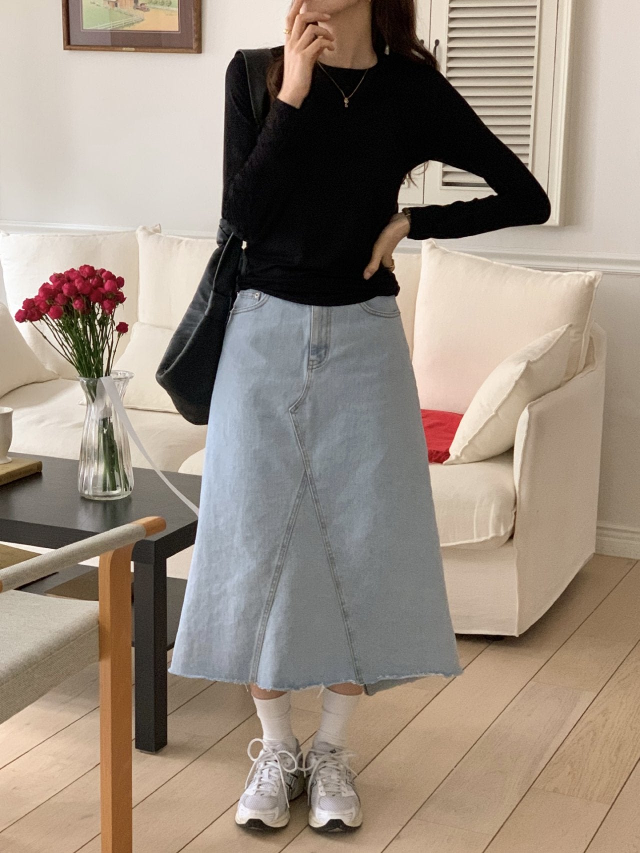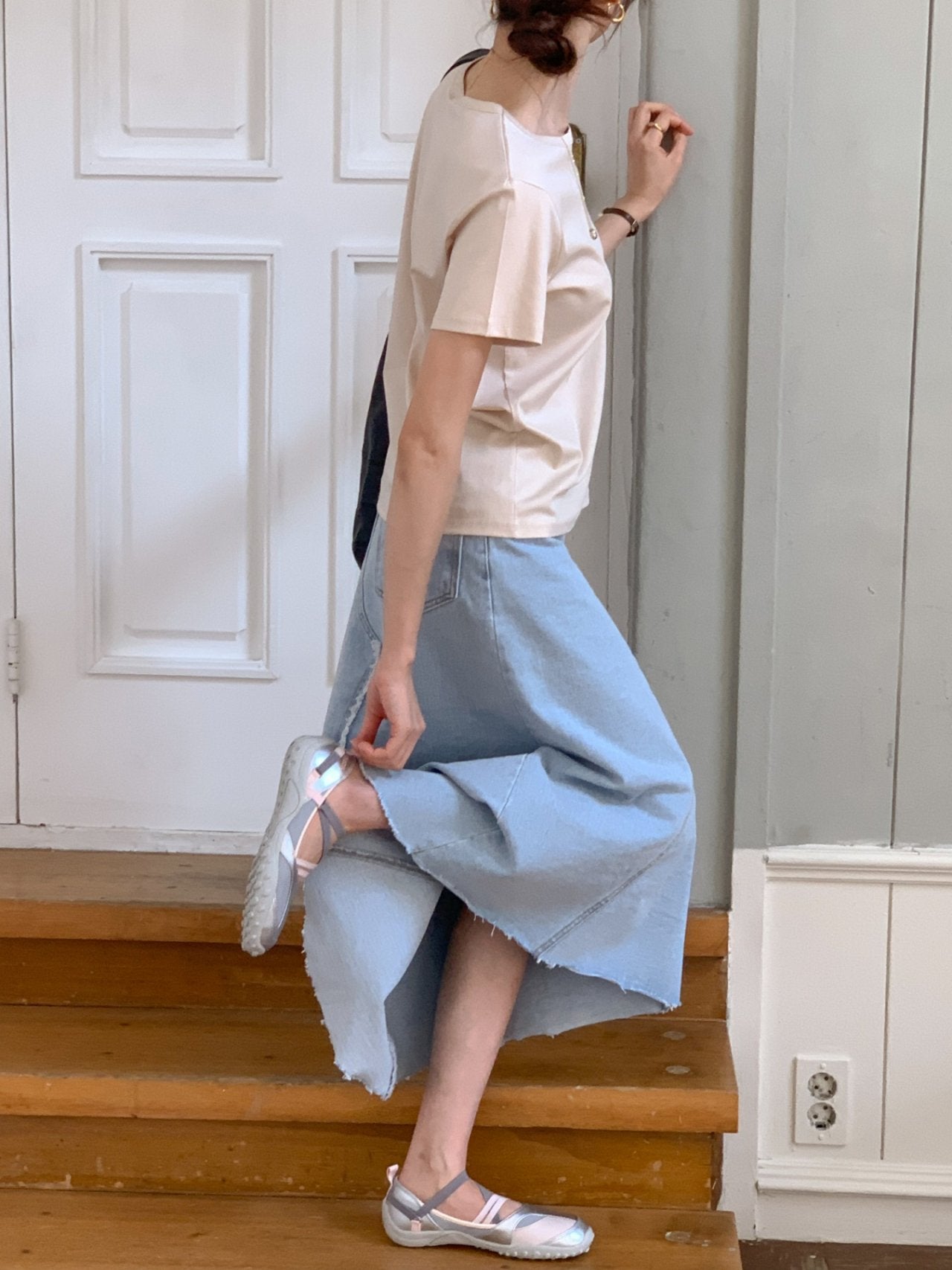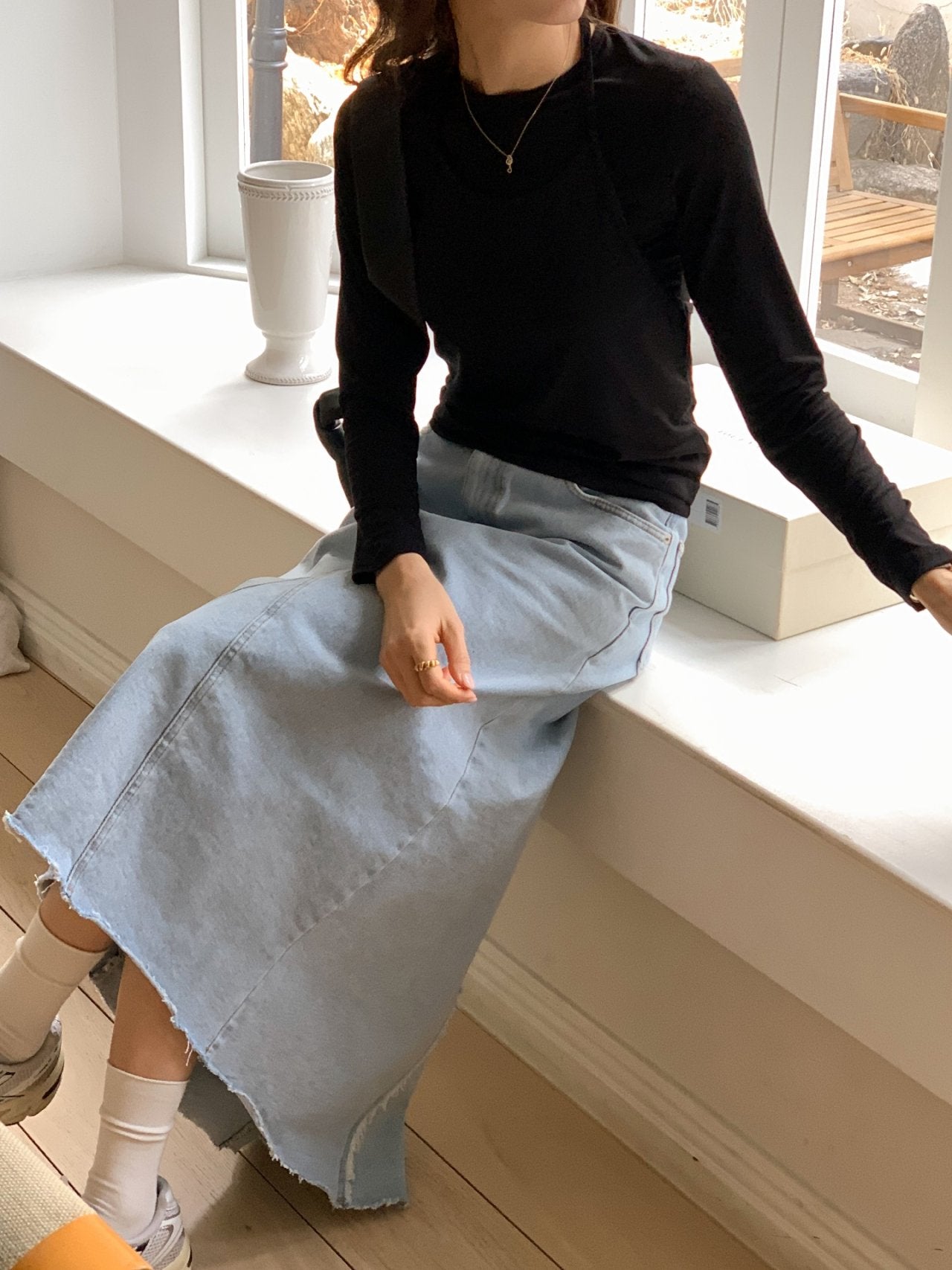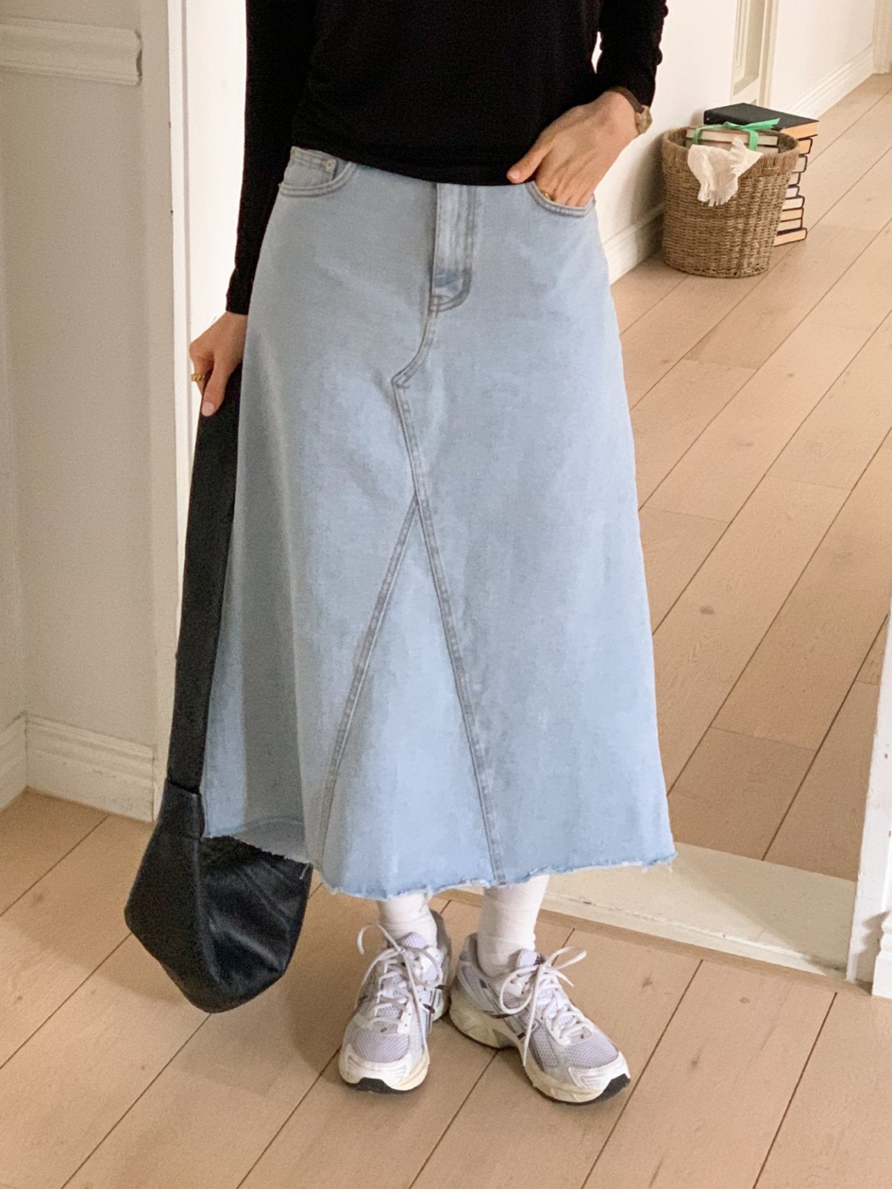 (Sale) Unbalanced Cut Denim A-line Raw cut Skirt
