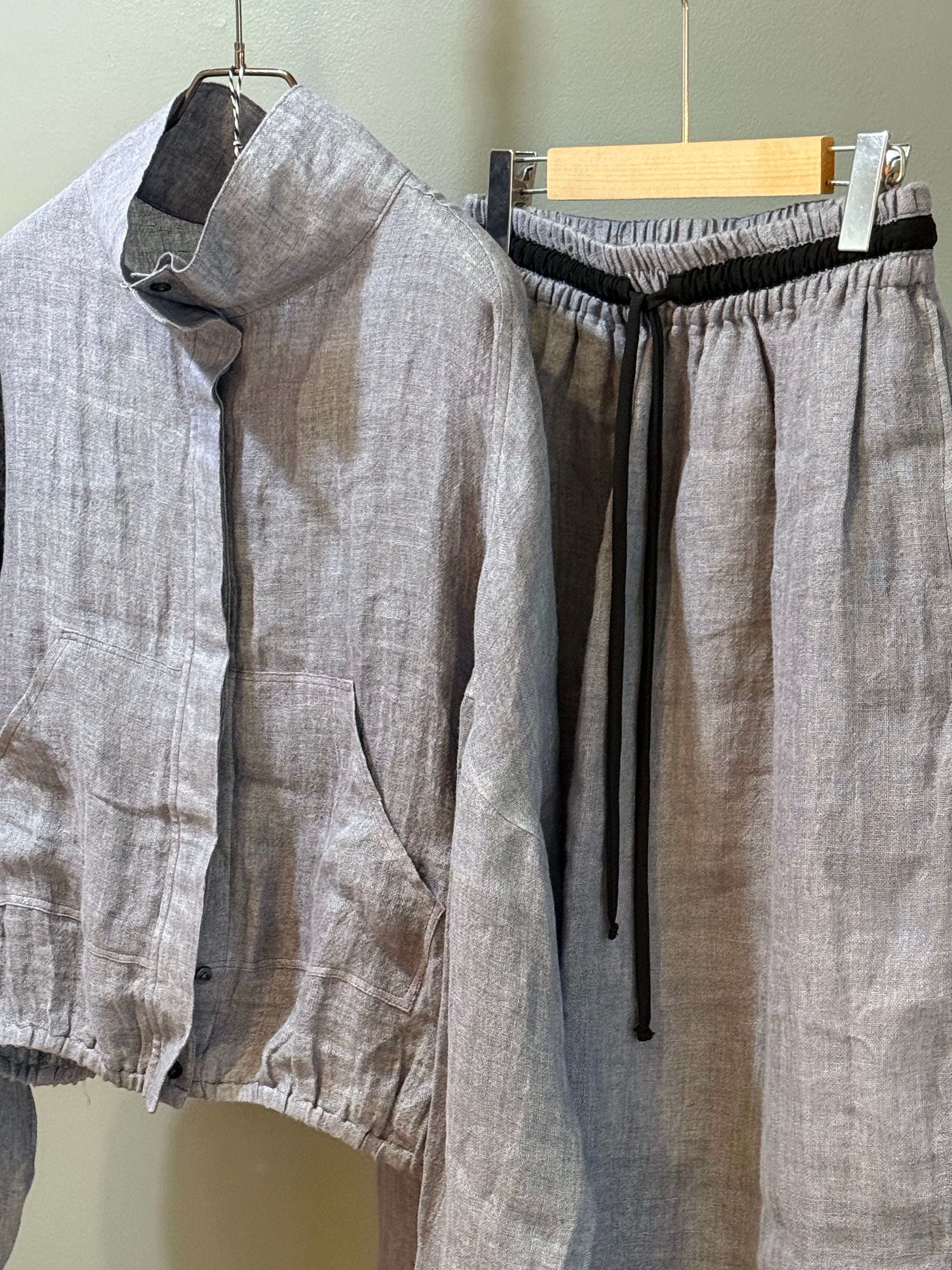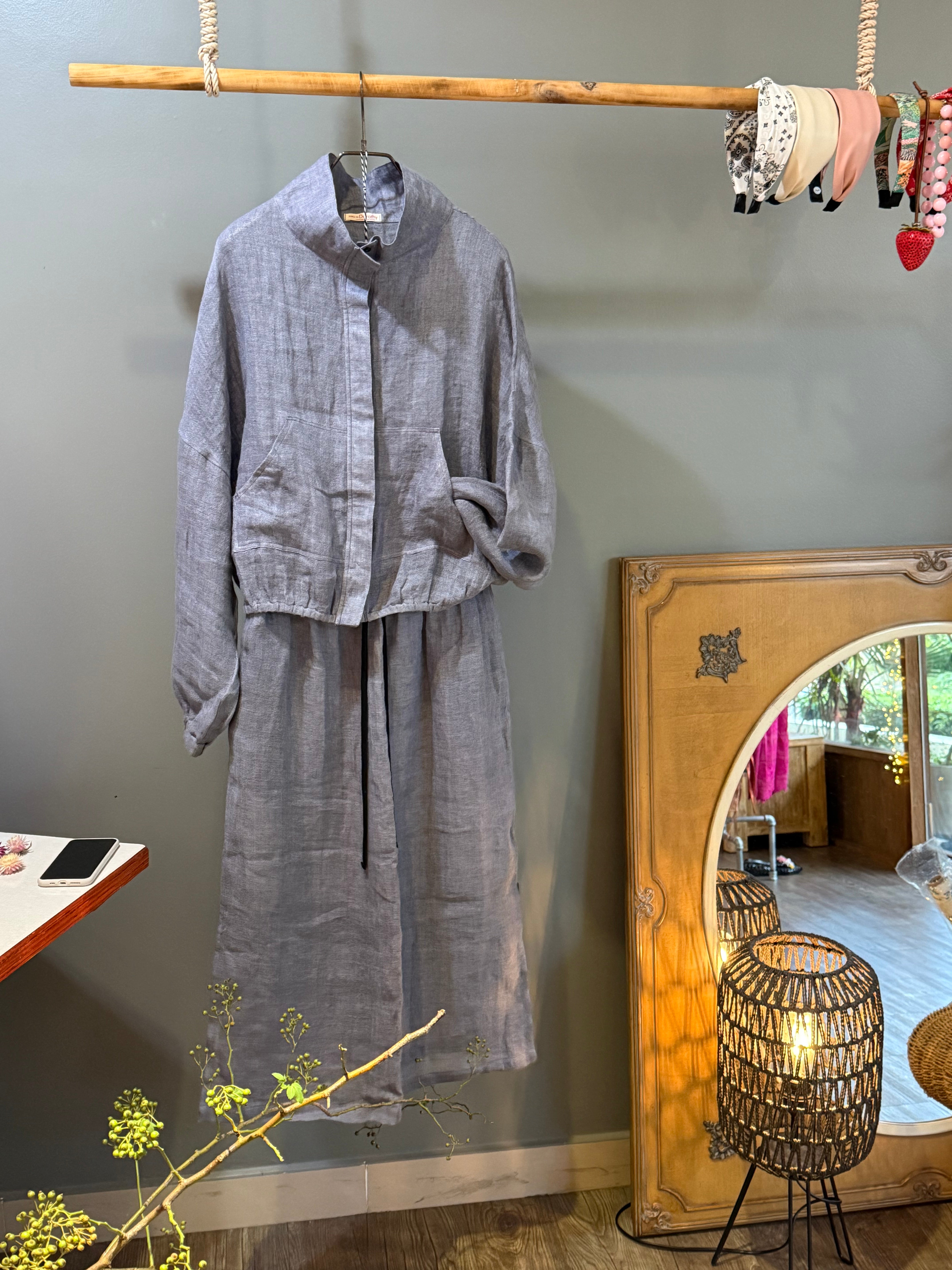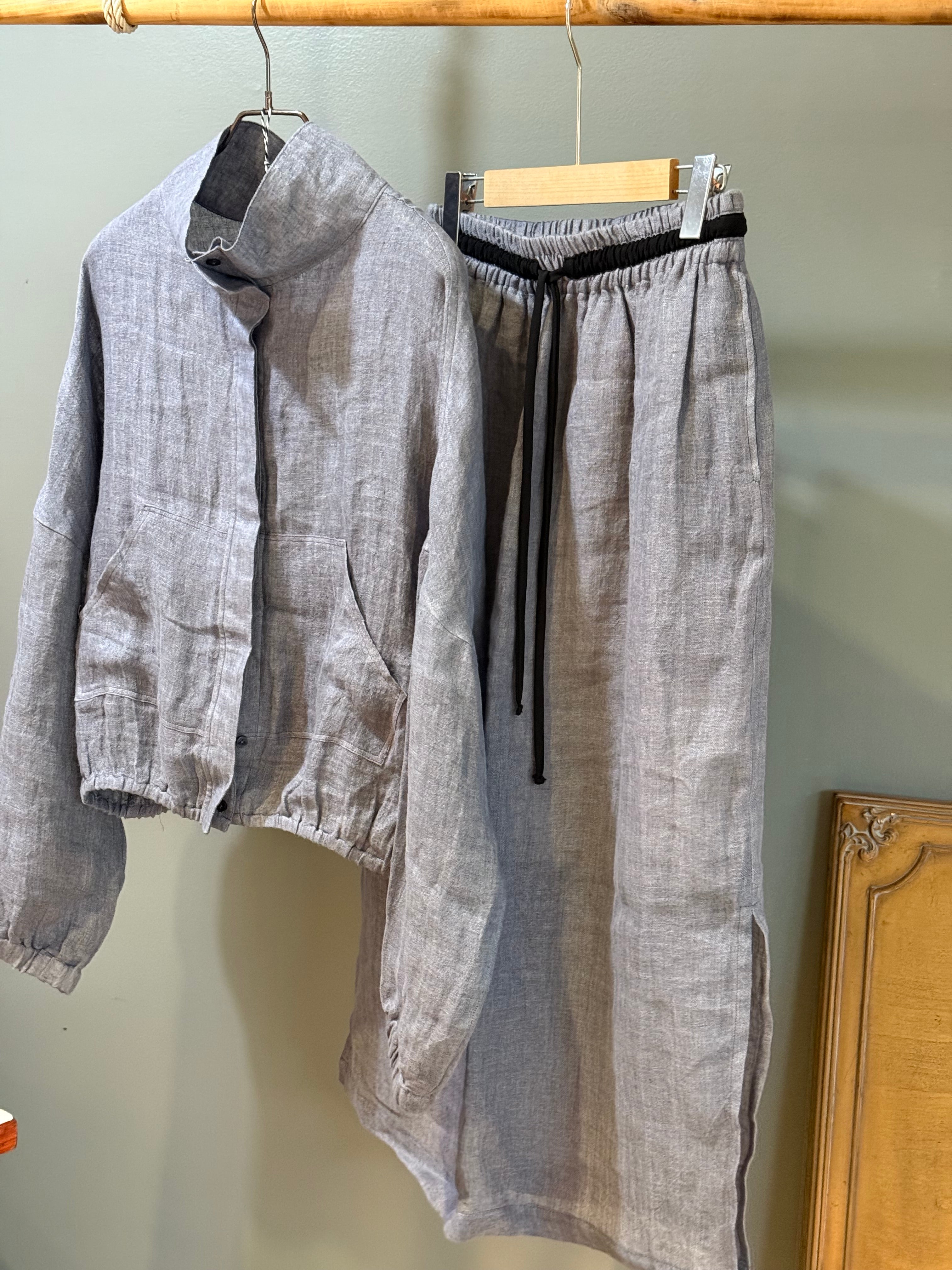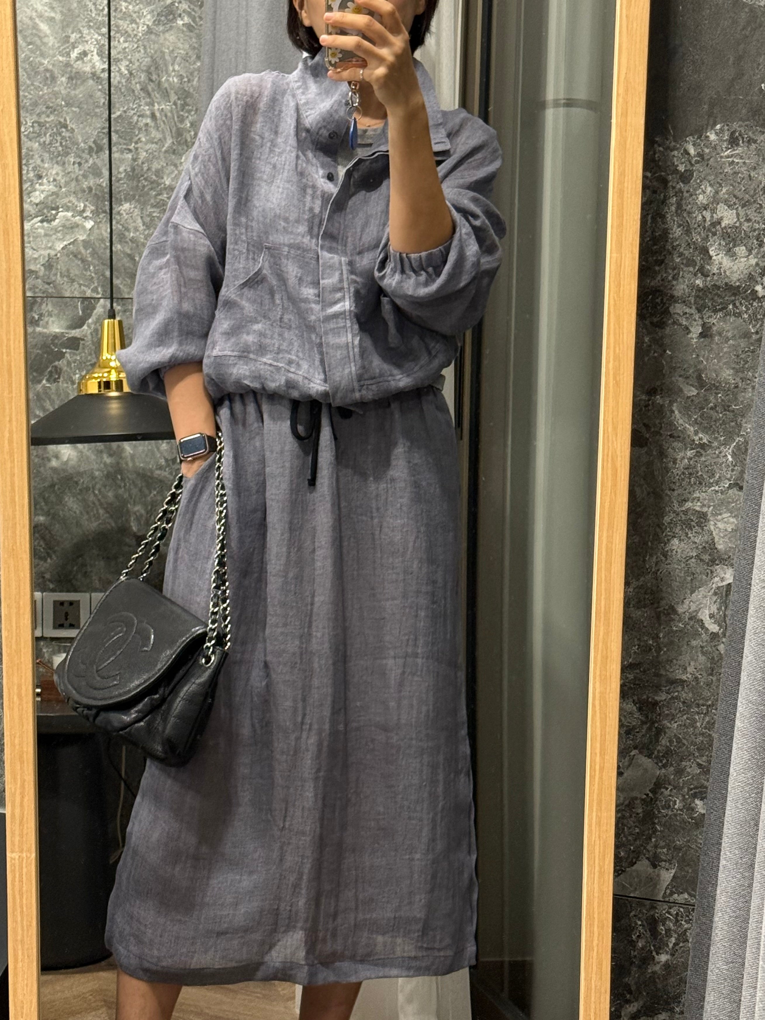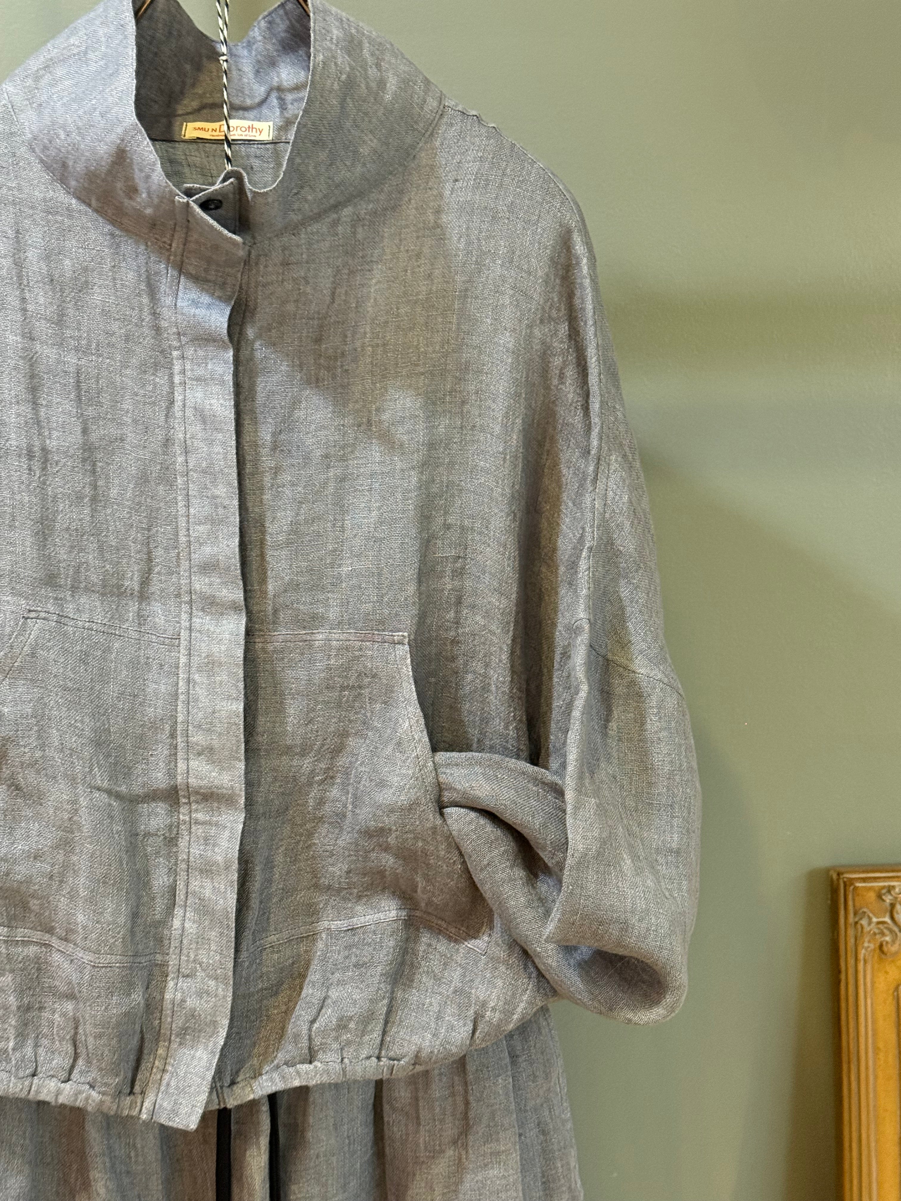 High collar pure linen skirt and jacket set