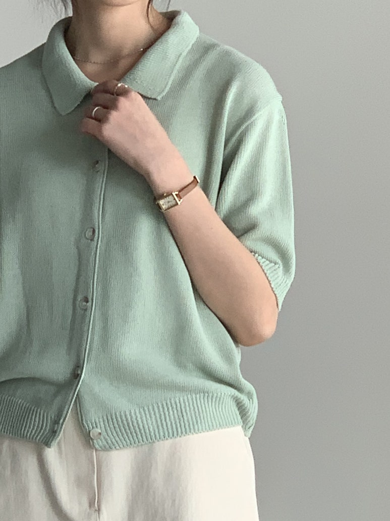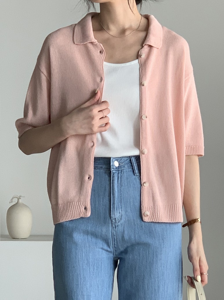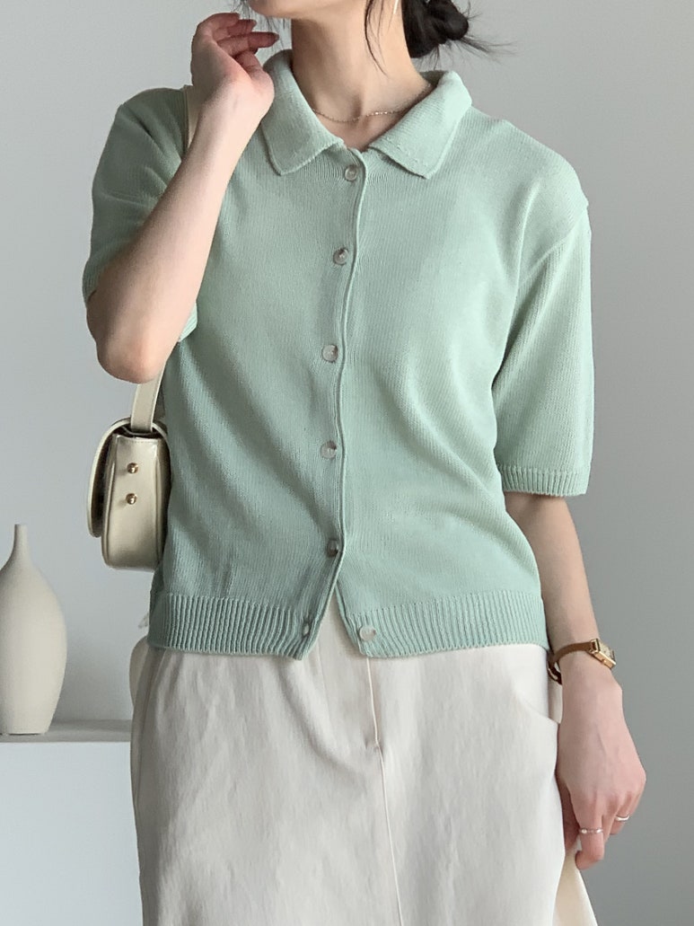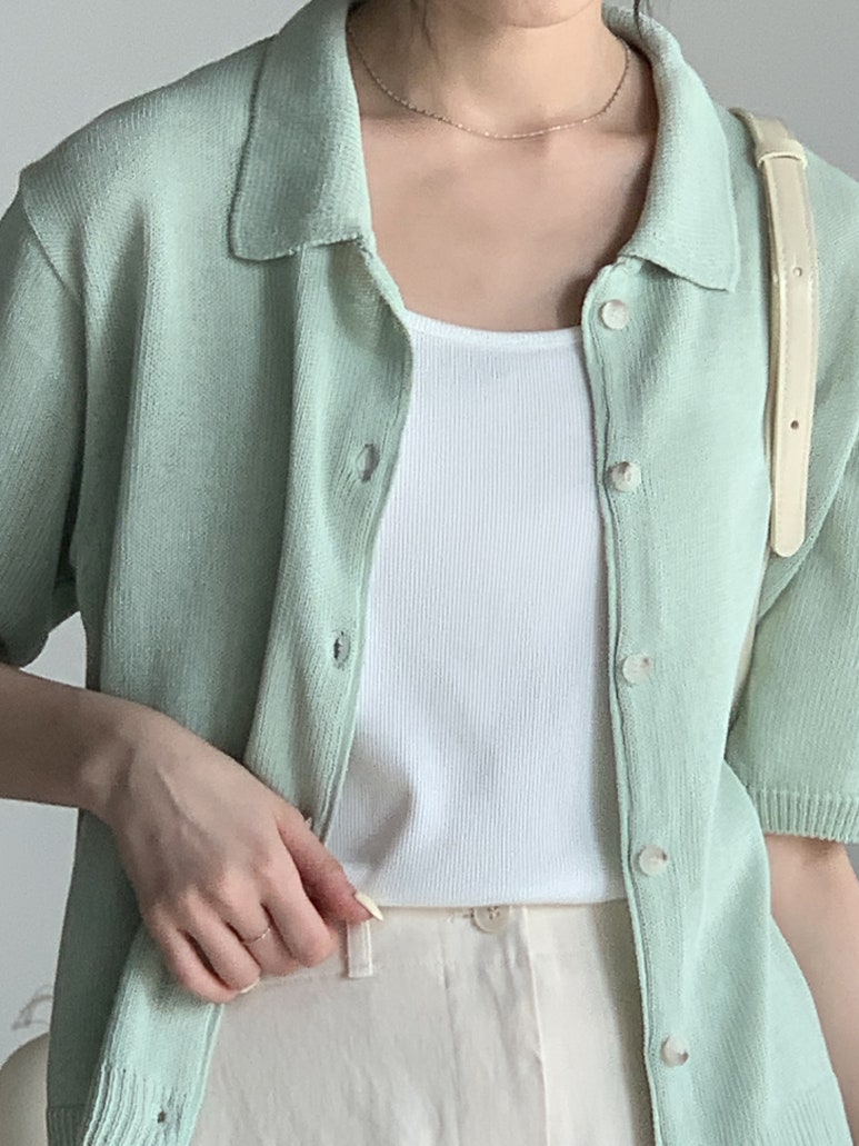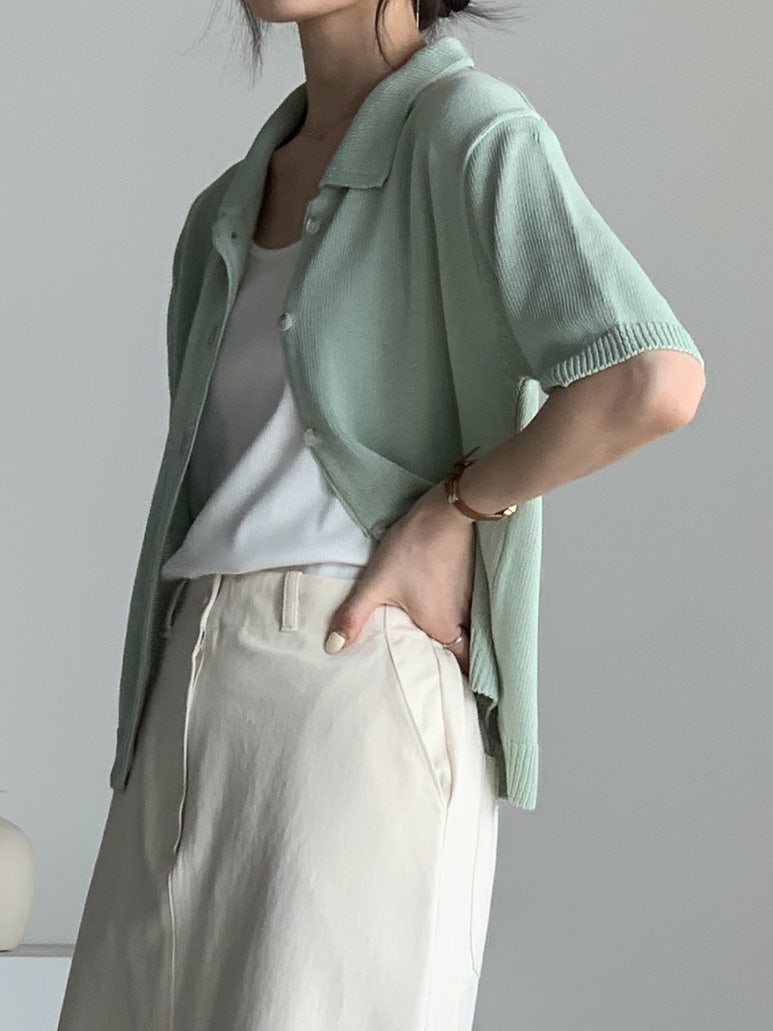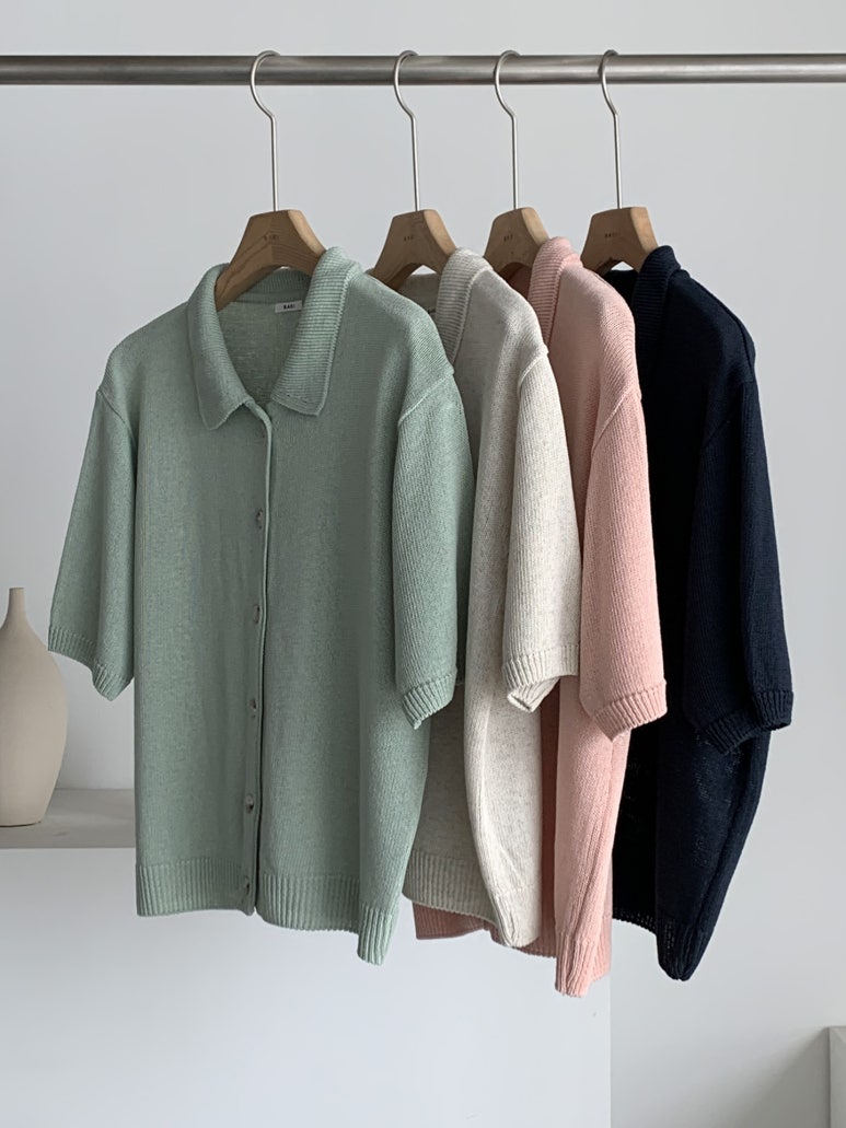 Linen Collar Cardigan | Short Sleeve Knit Shirt