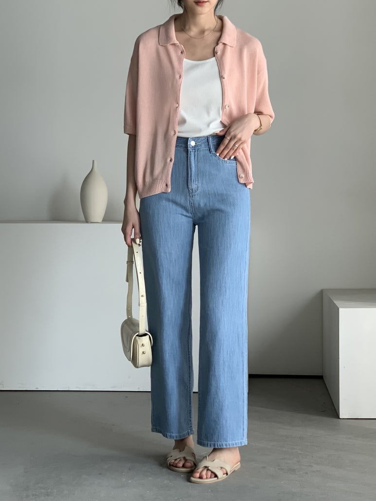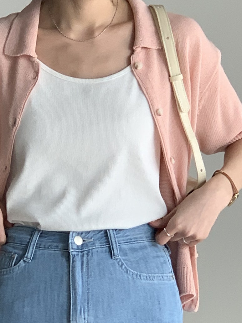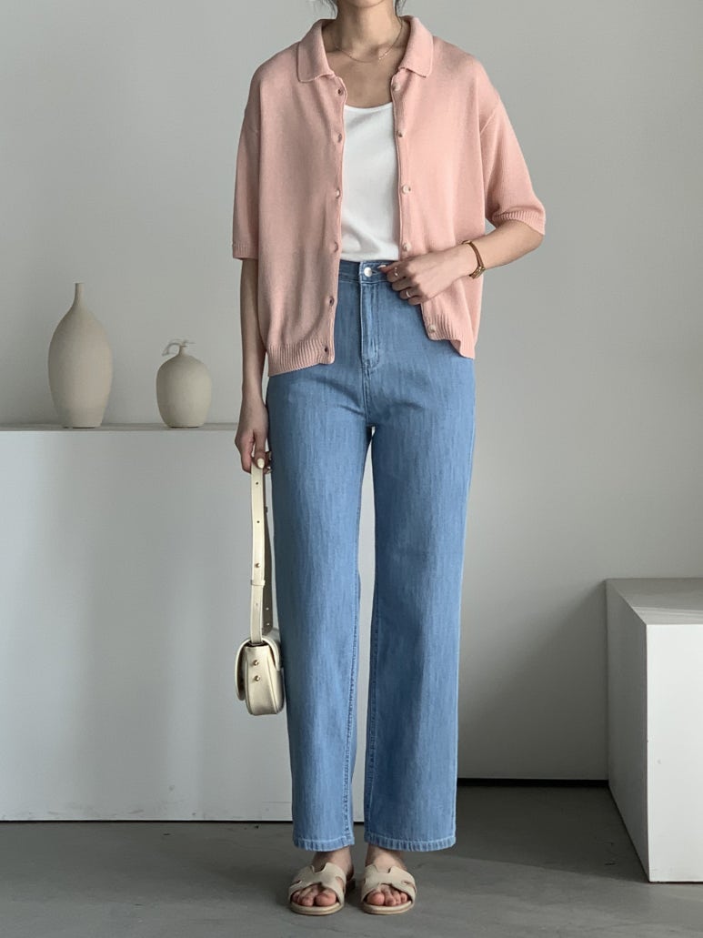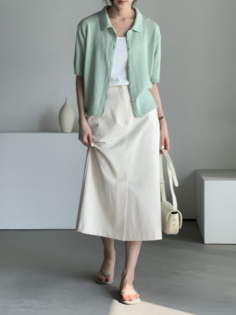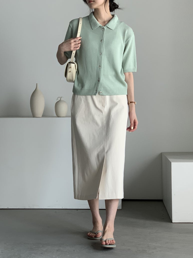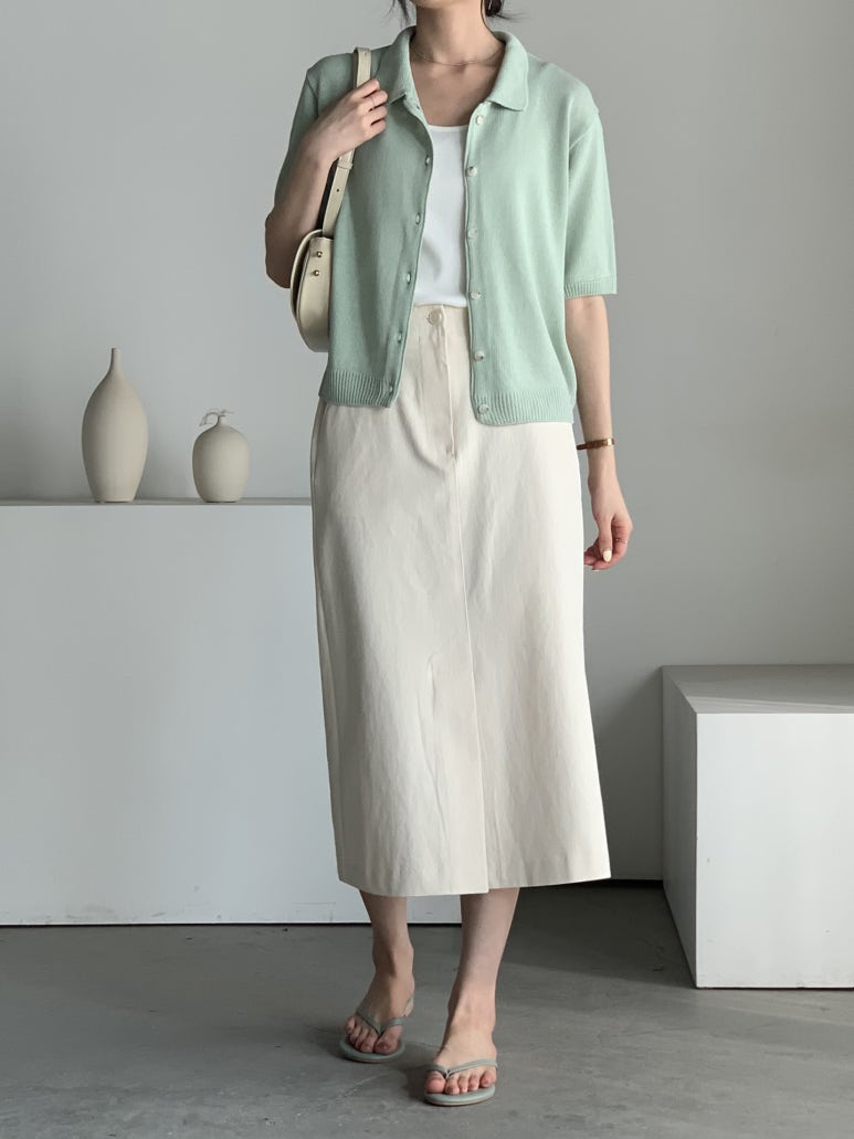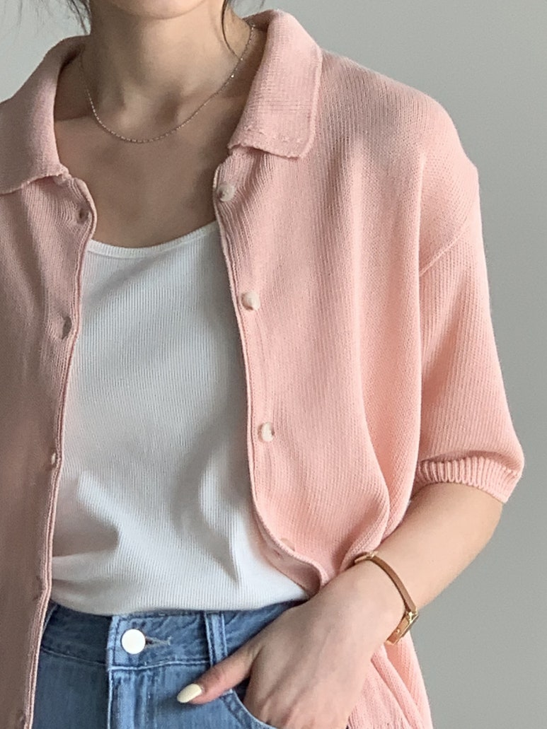 Linen Collar Cardigan | Short Sleeve Knit Shirt
