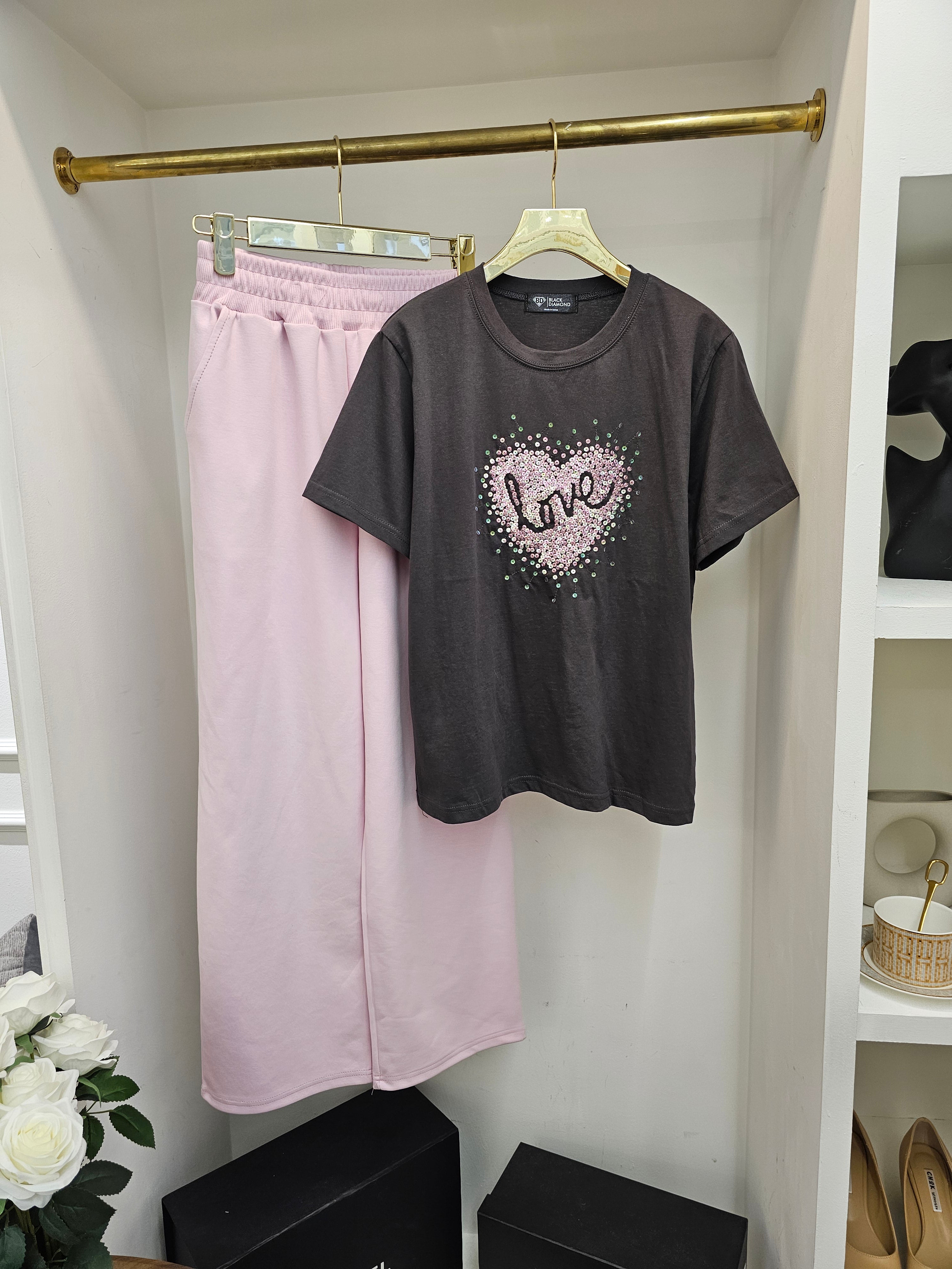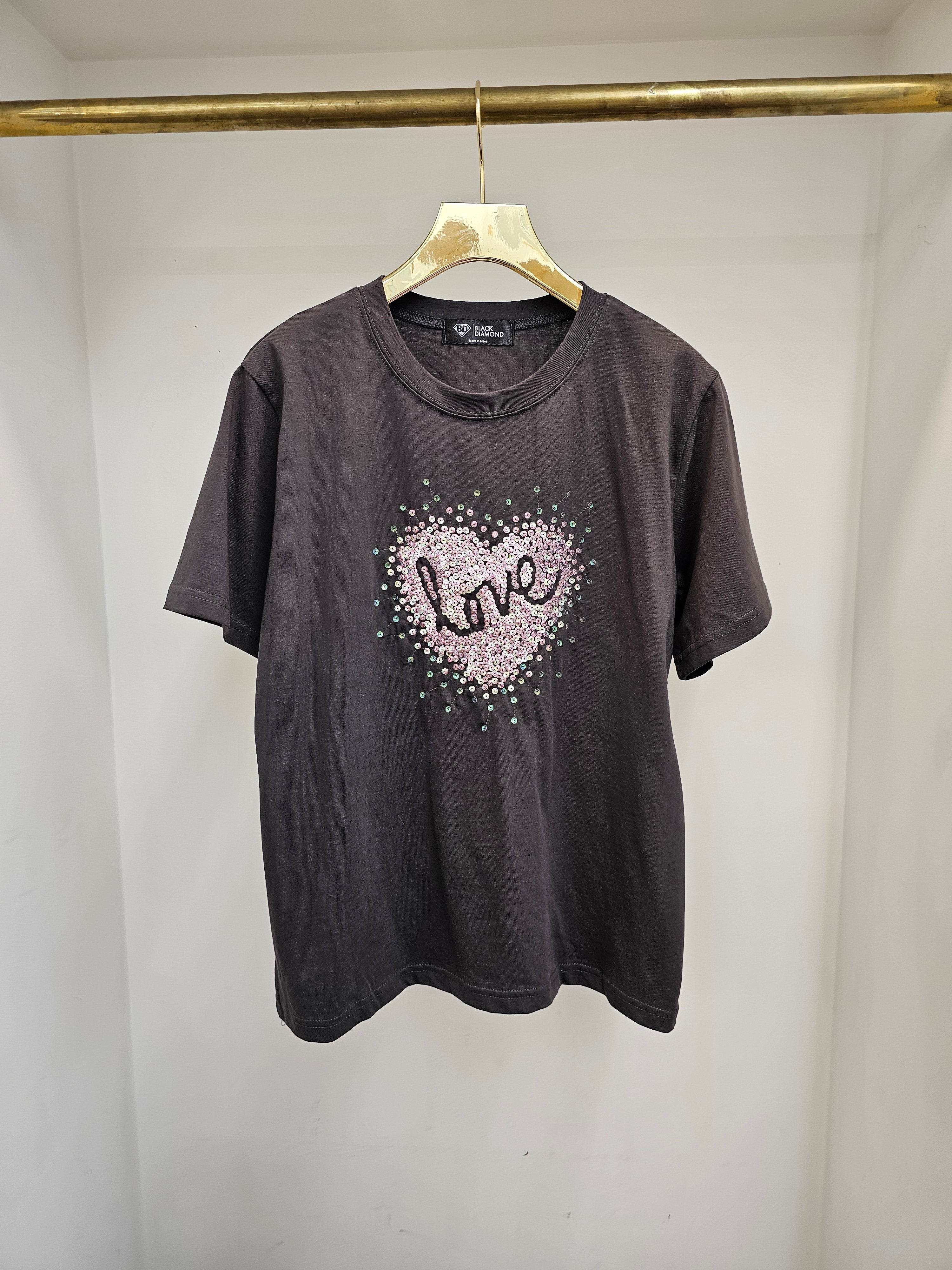 (Sequin Heart “Love” Tee)