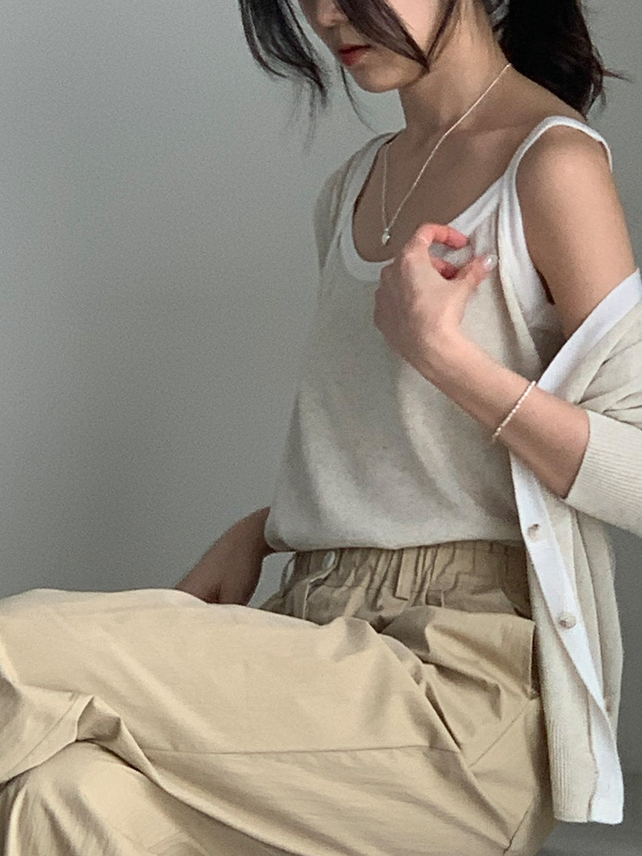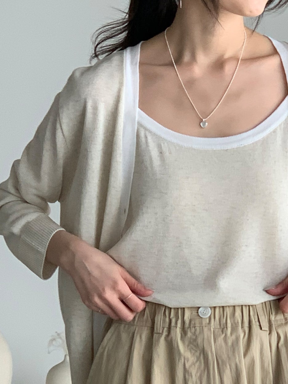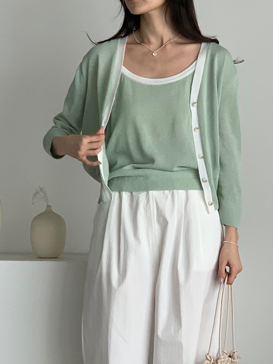 Please note that the sleeveless top and cardigan are made from the same material but produced separately. Slight differences in color and texture may occur.