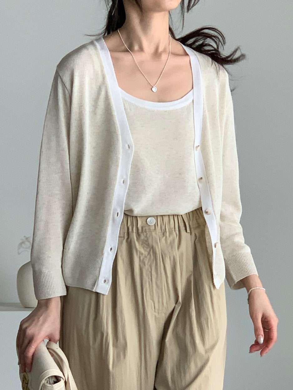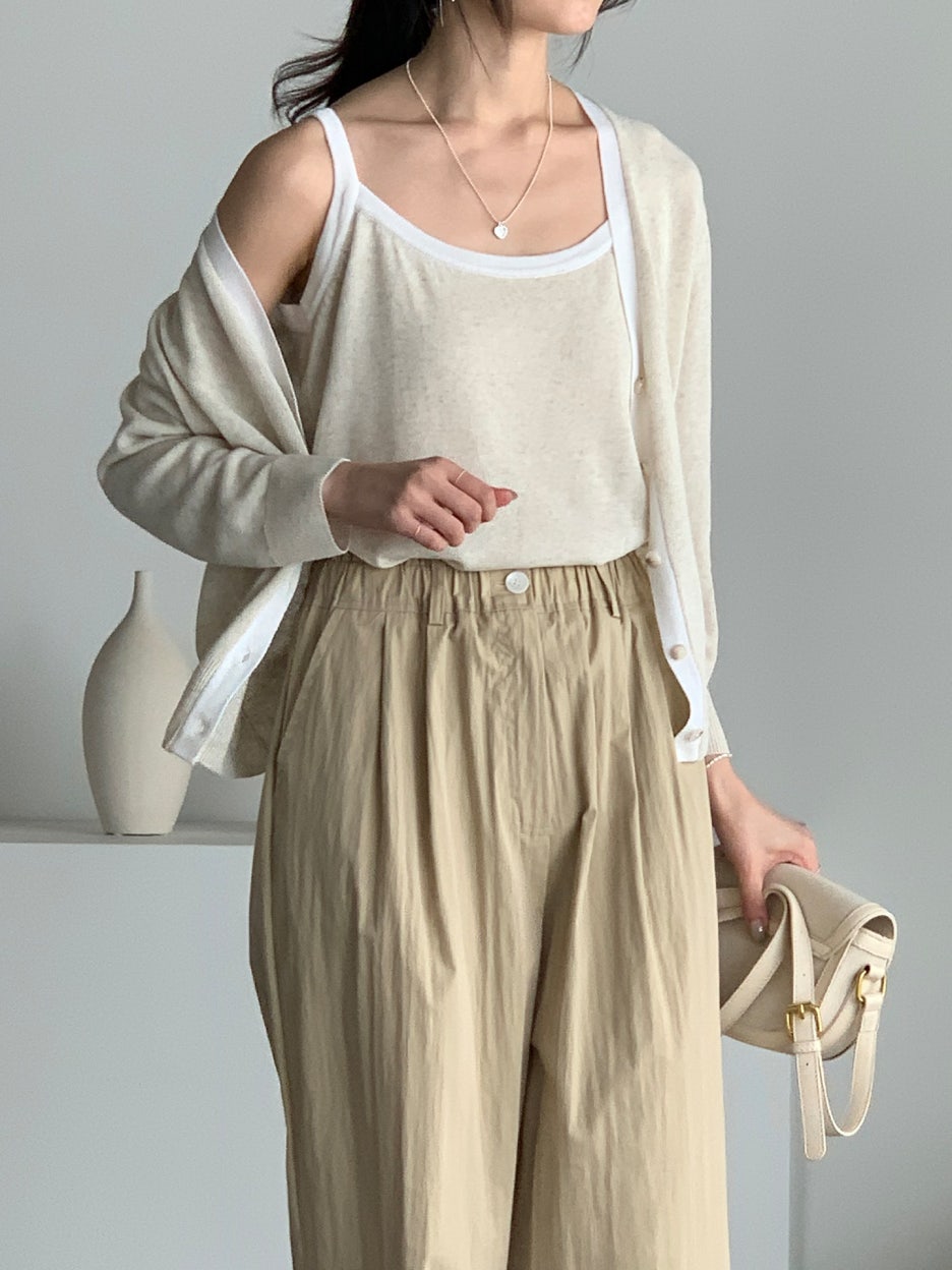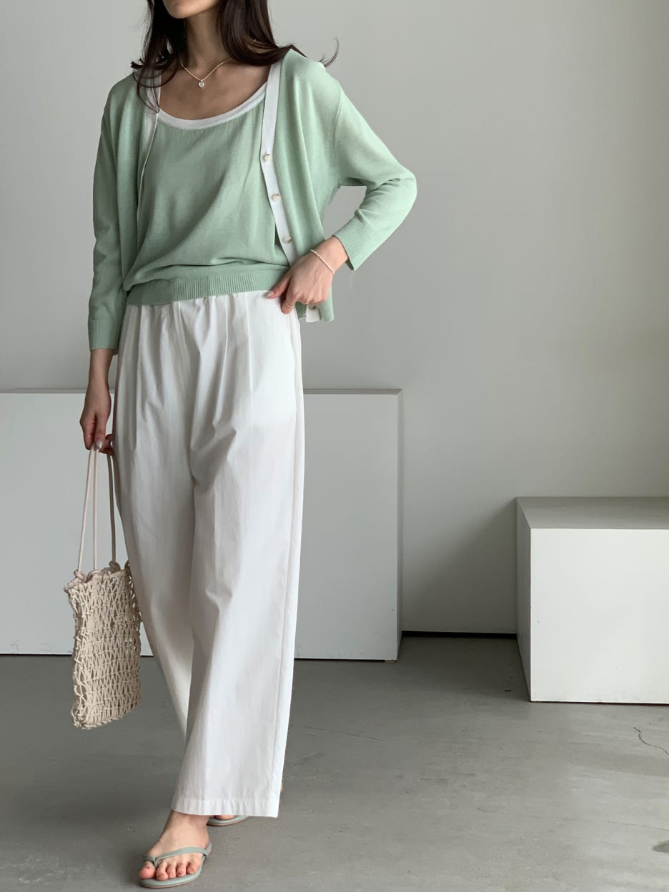Please note that the sleeveless top and cardigan are made from the same material but produced separately. Slight differences in color and texture may occur.