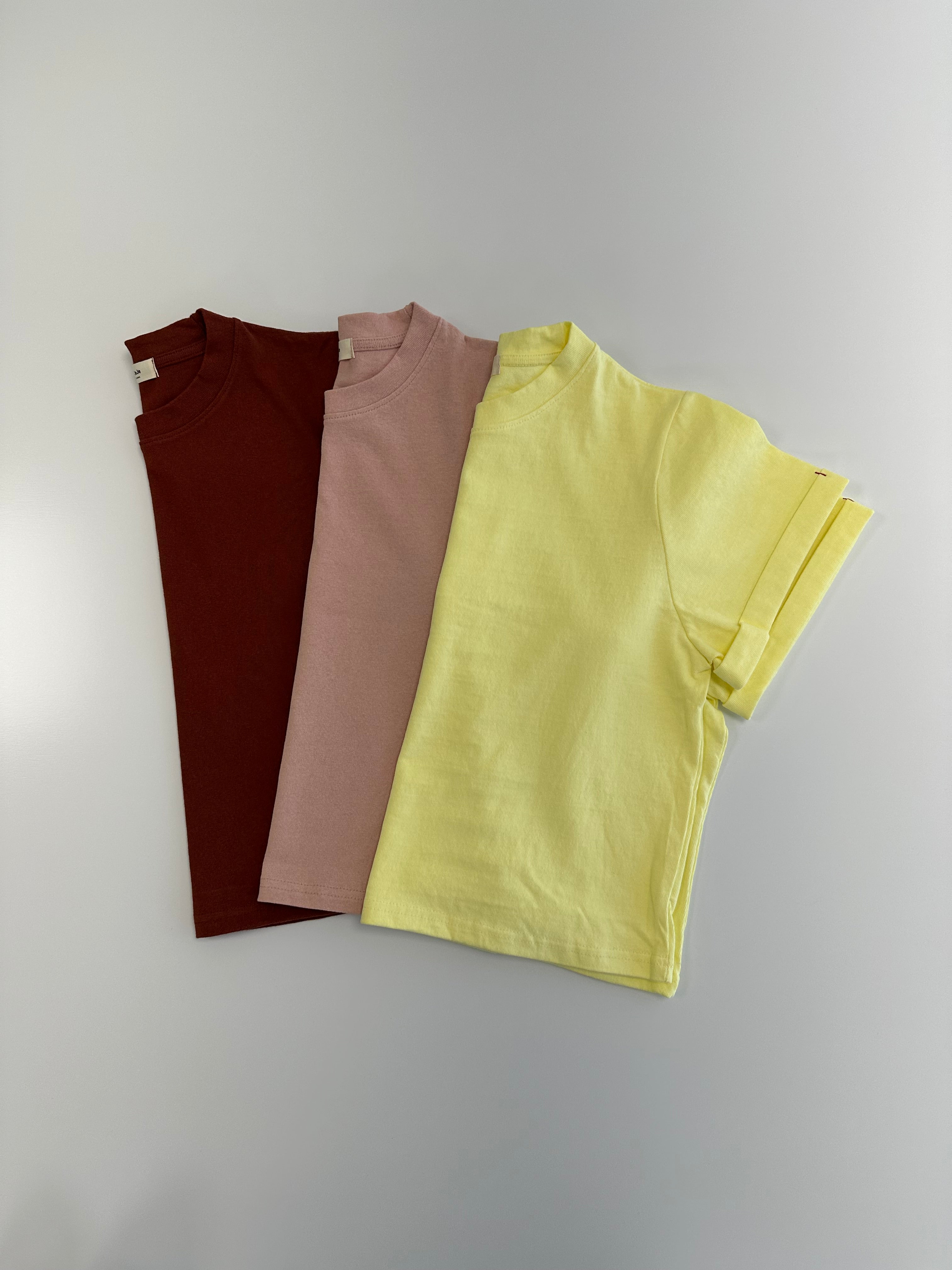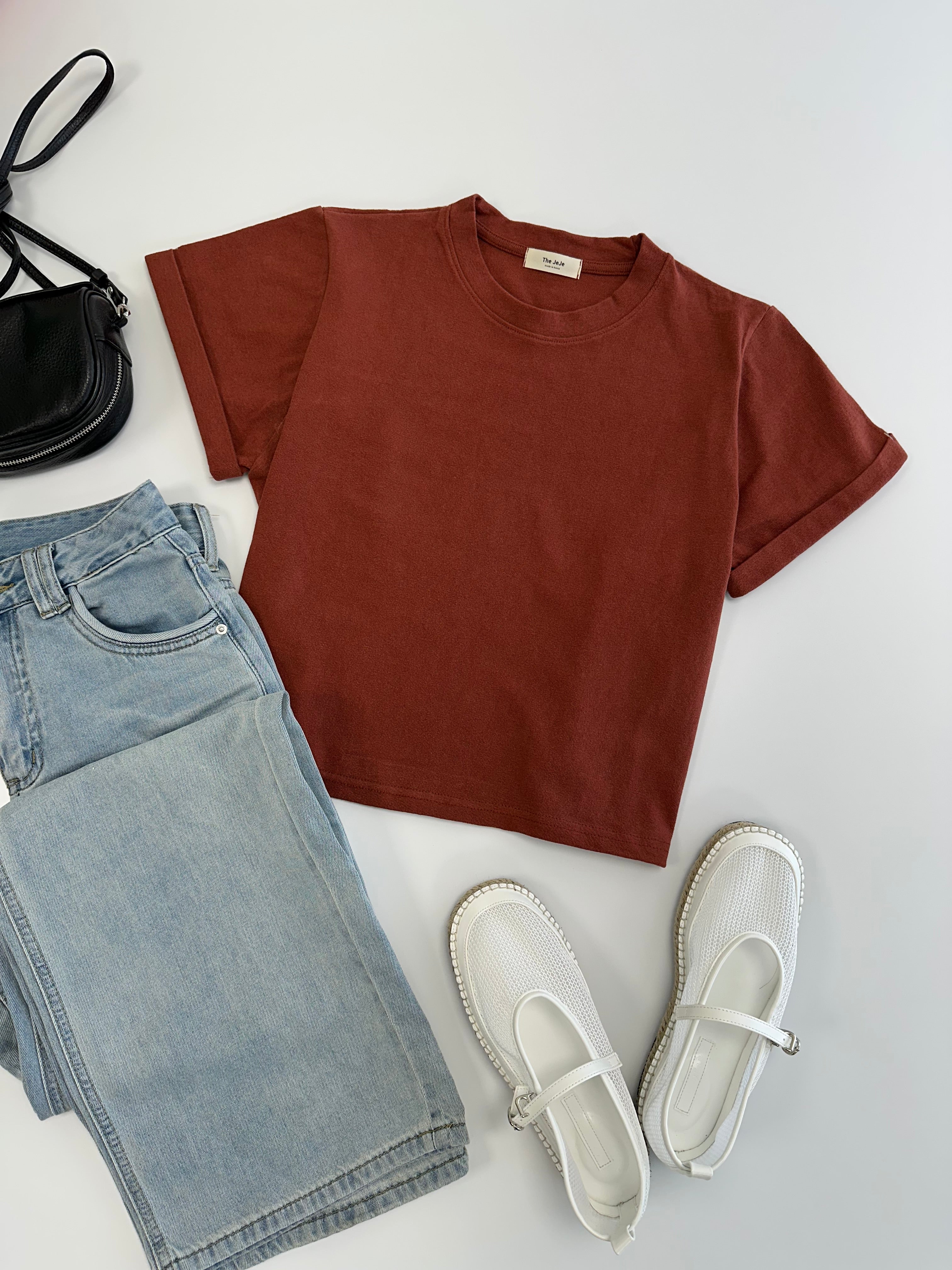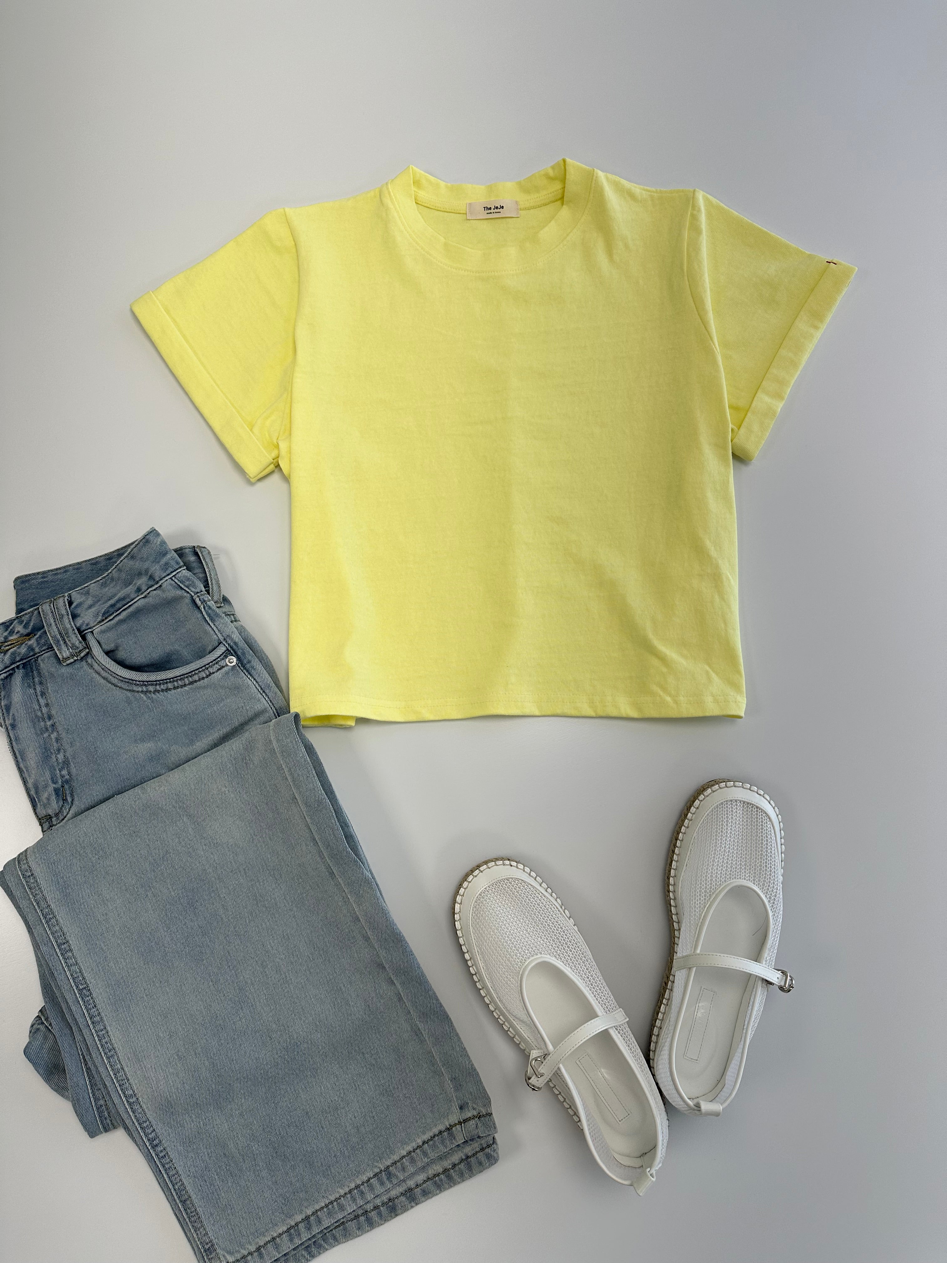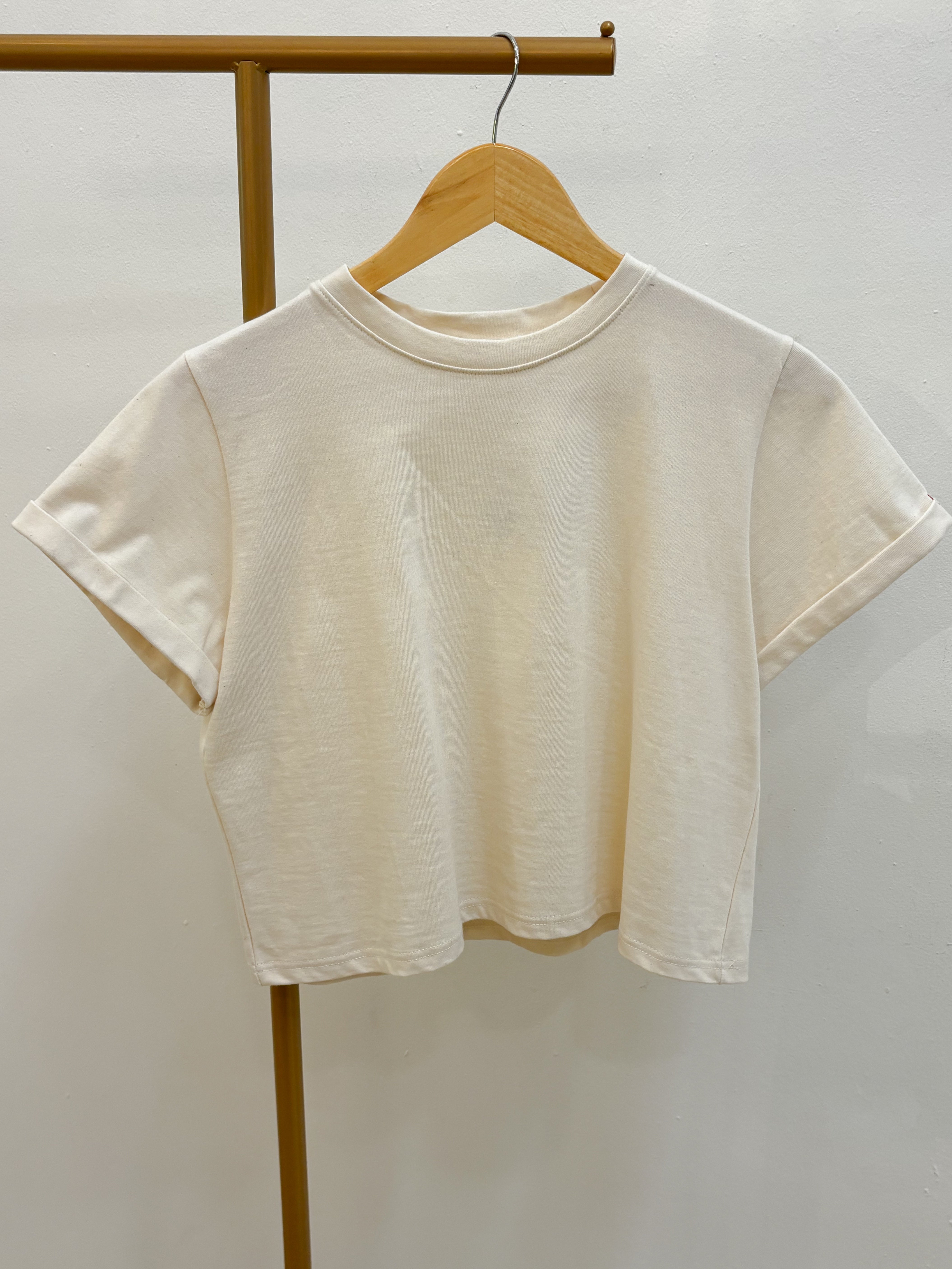 Natural Roll-Up Basic T-Shirt Made in Korea premium cotton