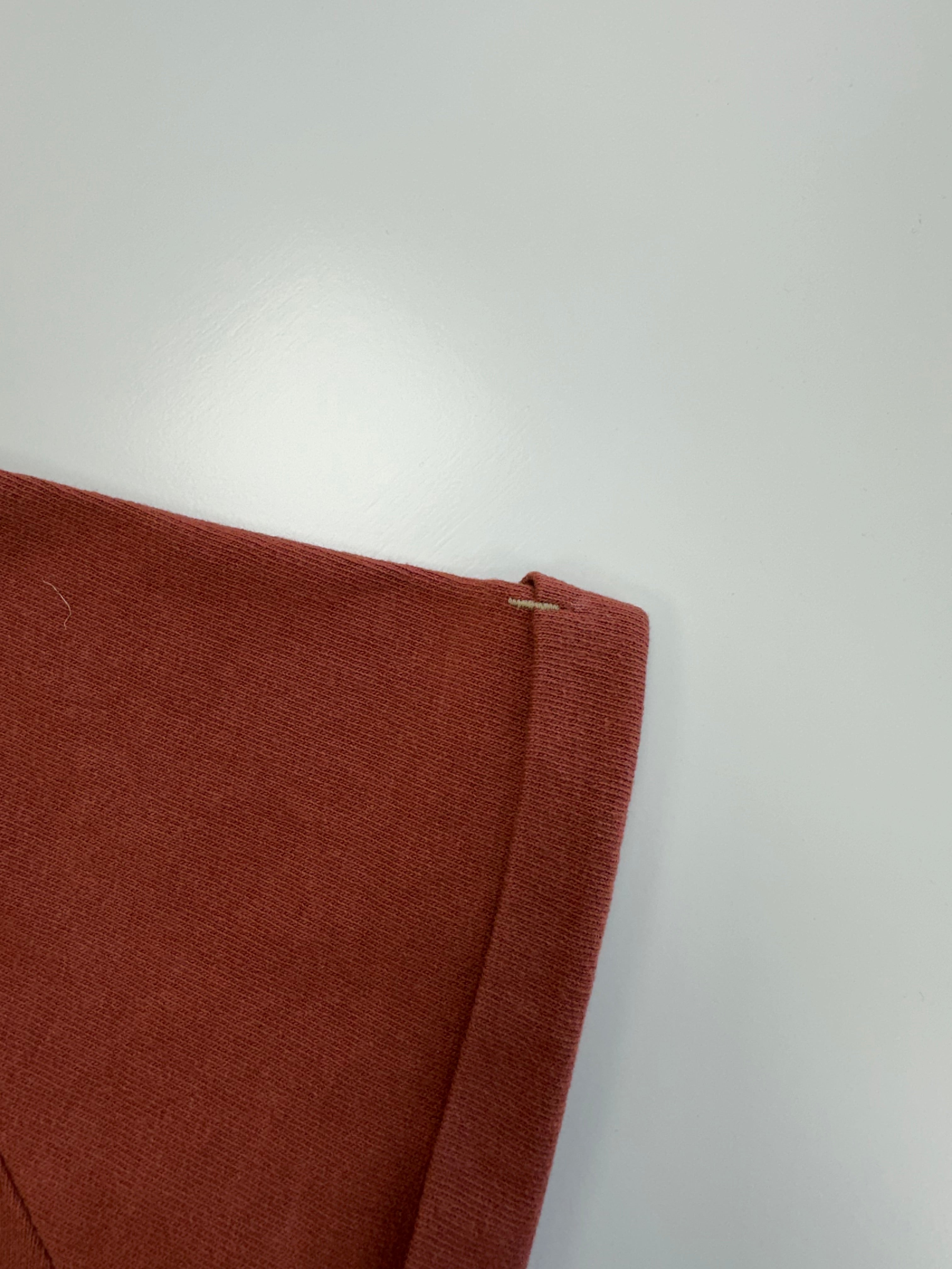 This is the perfect cut—not too long, not too short, just the right length to flatter any figure. The slightly rolled-up sleeves add a subtle, stylish touch, and the color stitching elevates the design. At first glance, it may seem simple, but the cut and the fine stitching details really make this t-shirt stand out.