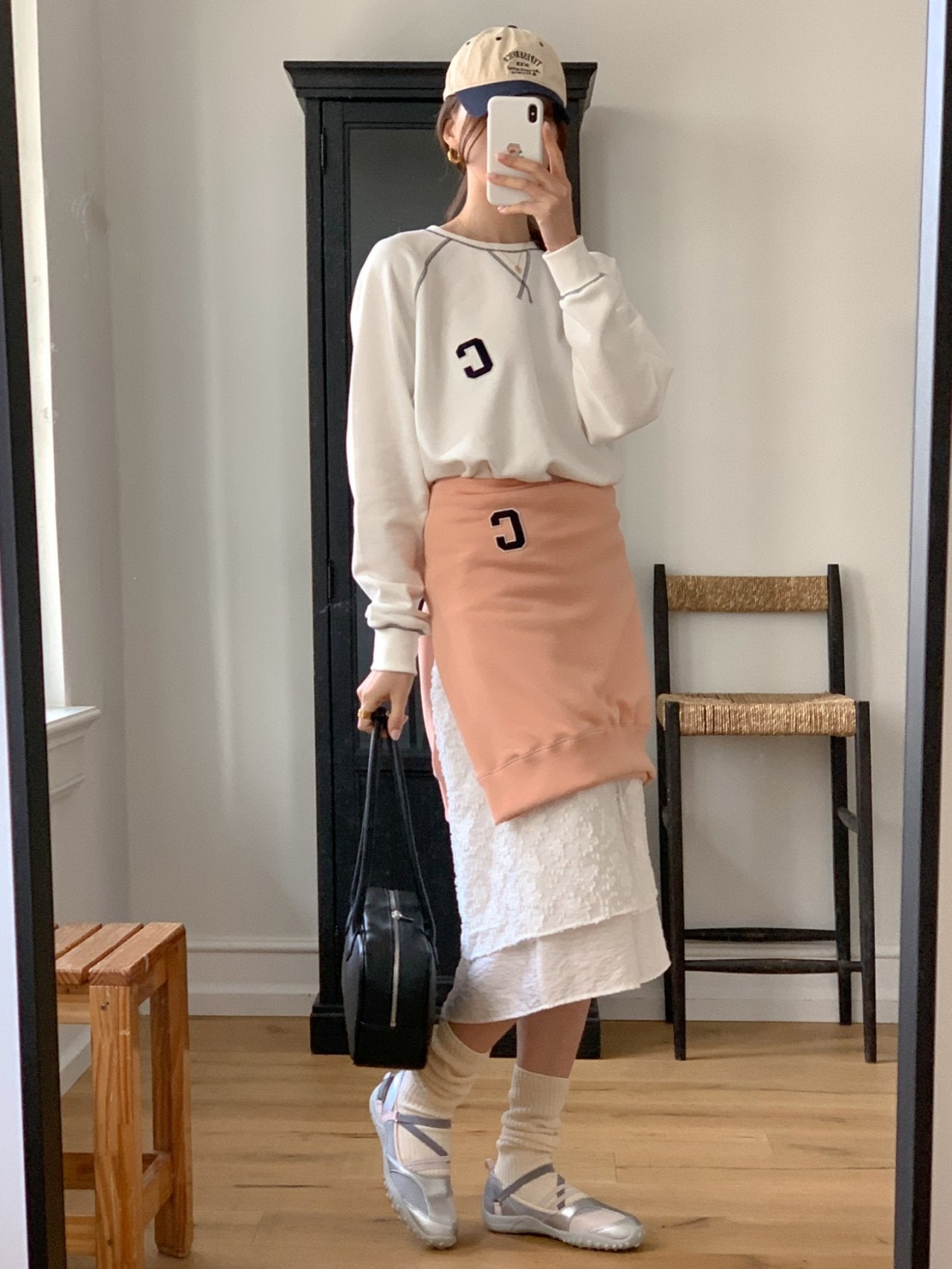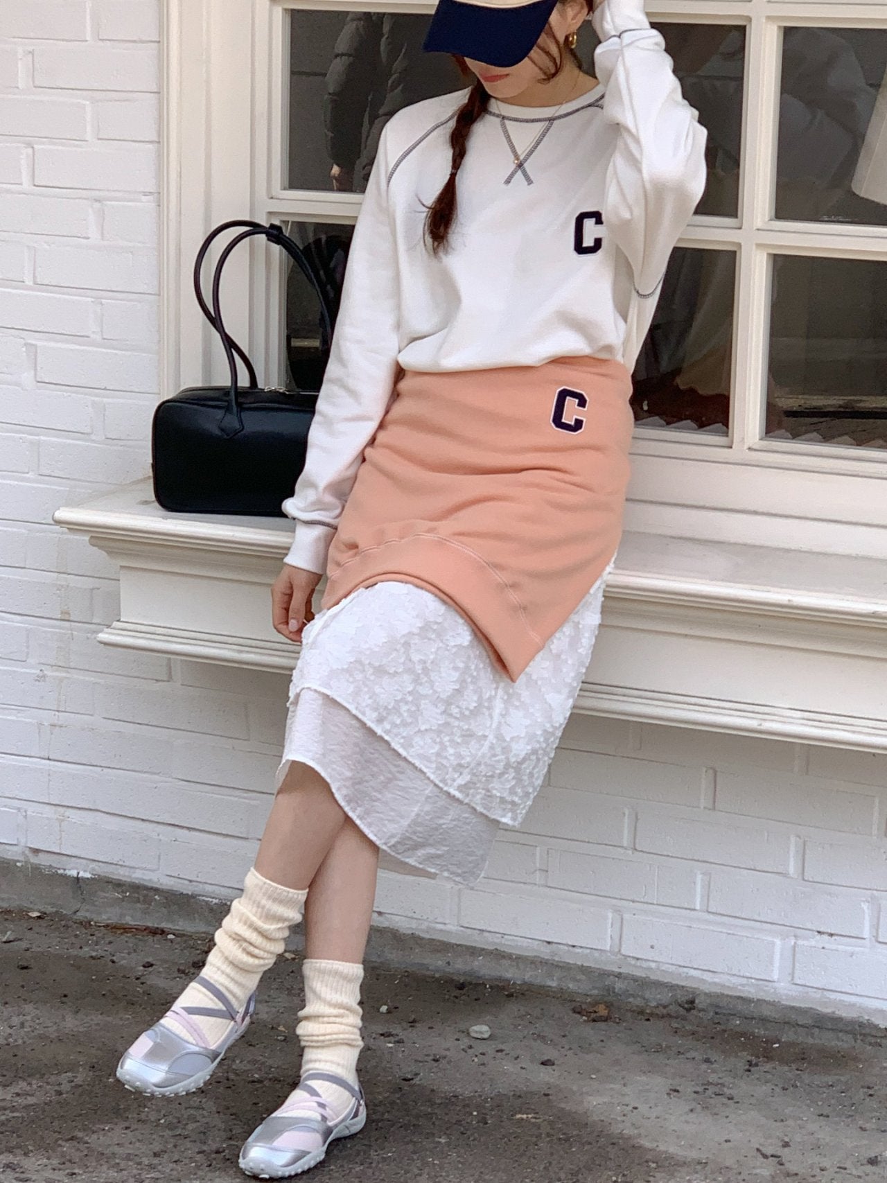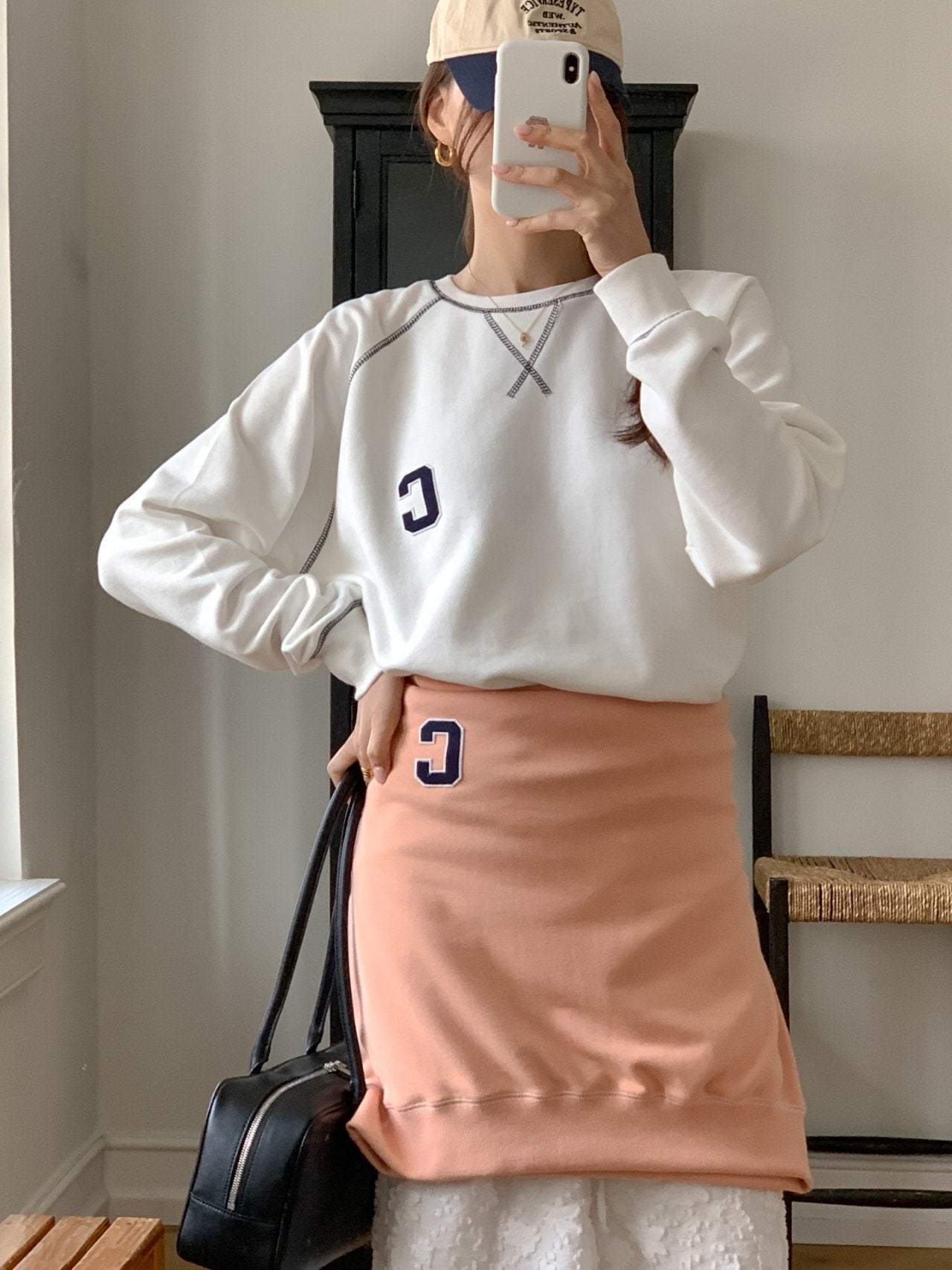 • Minimal “C” patch embroidery for a sporty accent