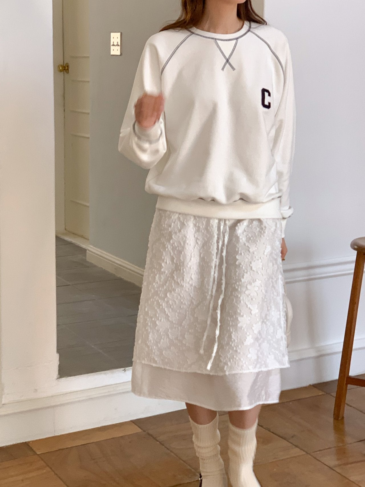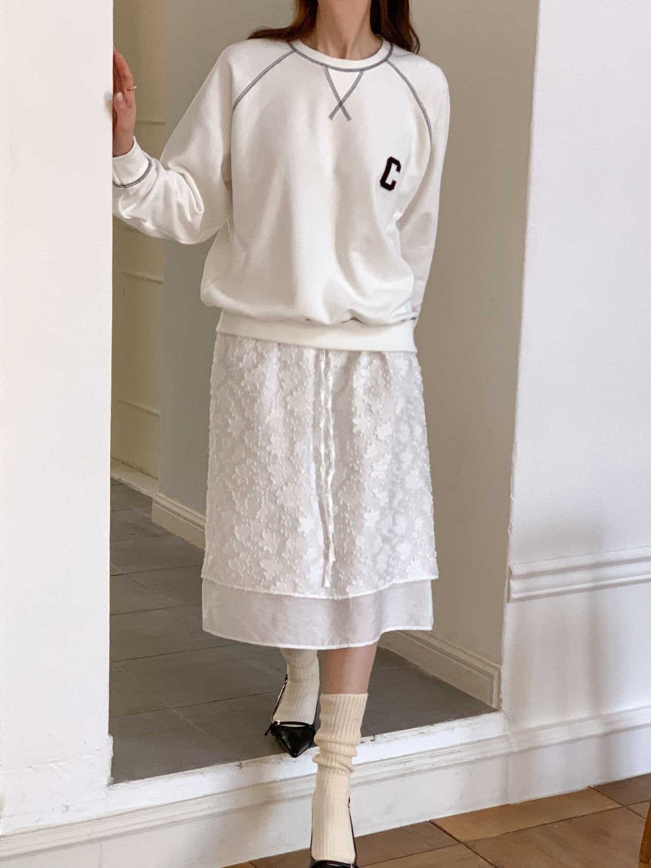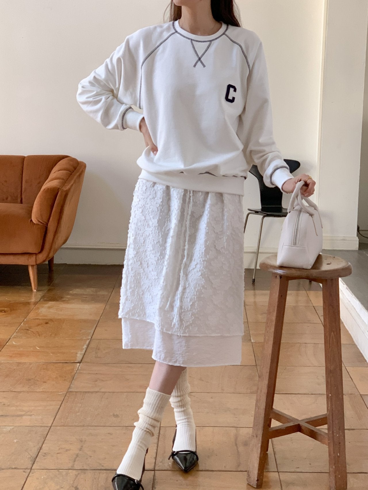 • Minimal “C” patch embroidery for a sporty accent