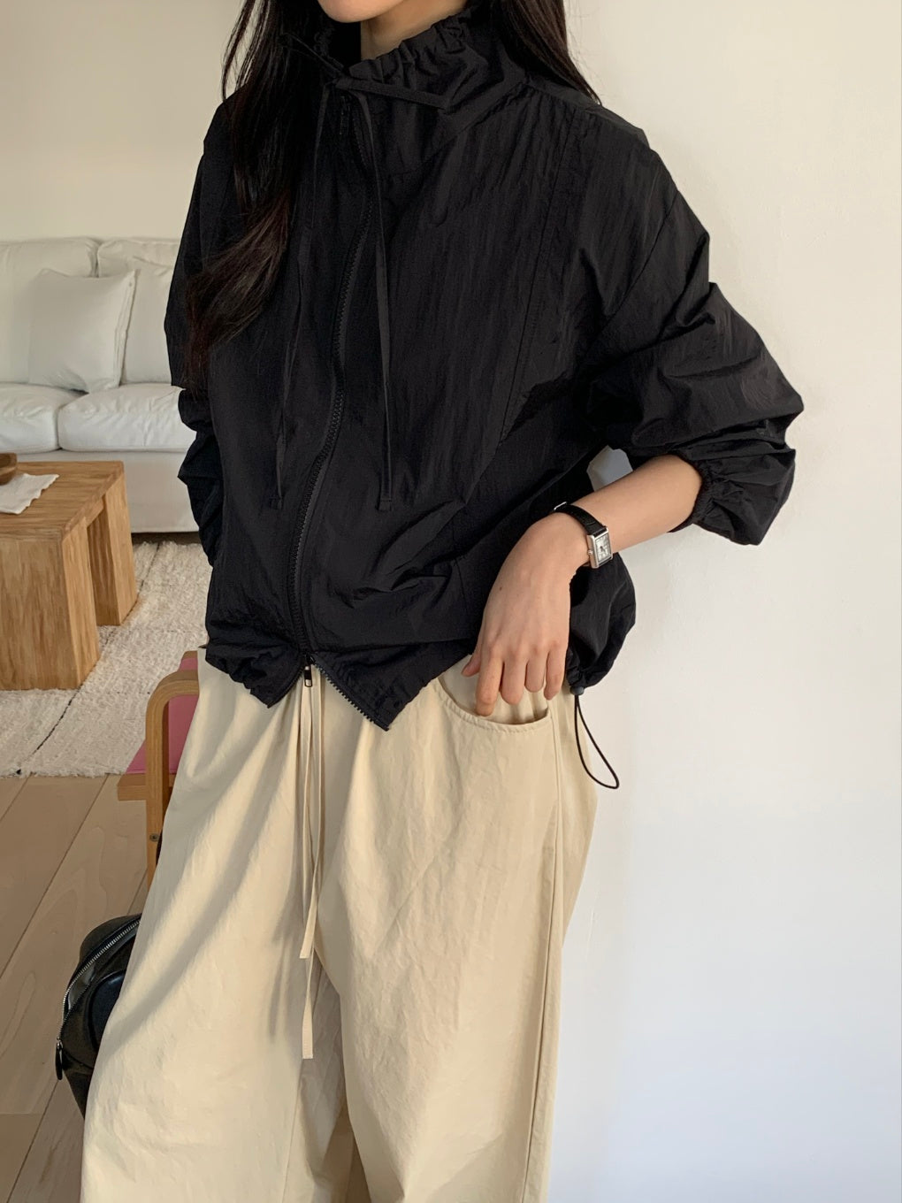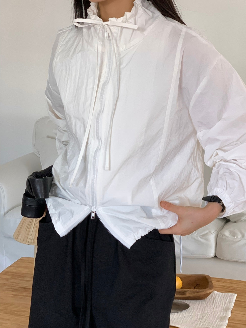 (Sale) Ribbon Crisp Nylon 2zipper Jacket