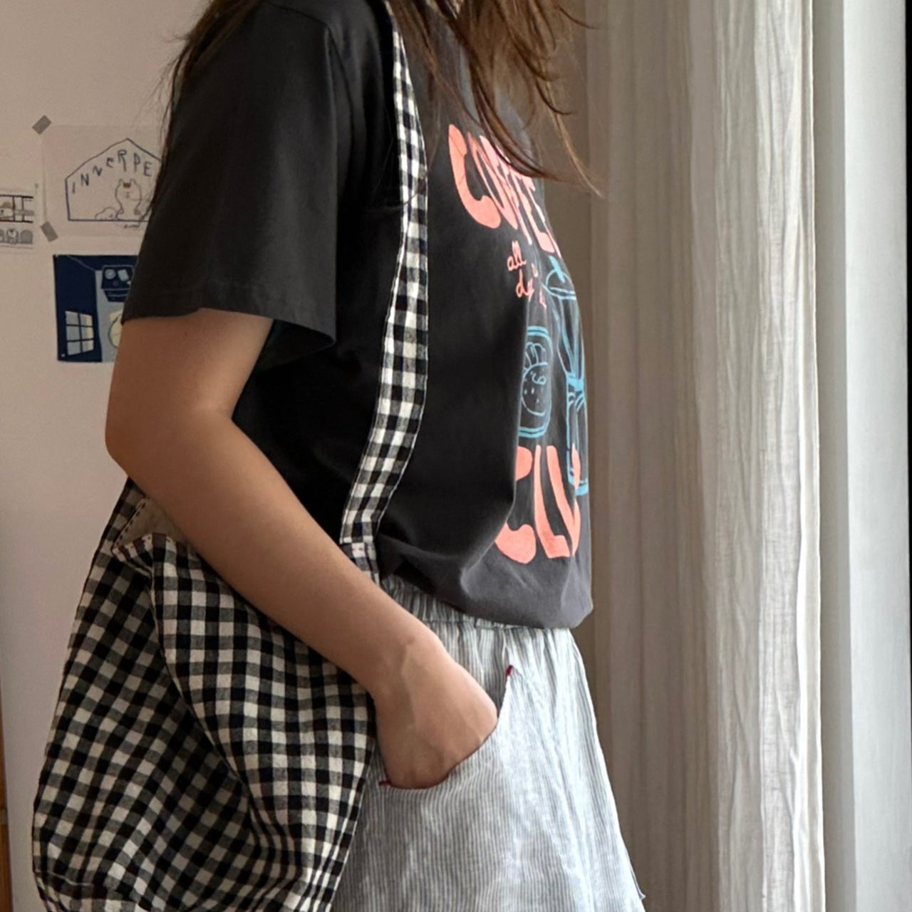Love the trousers - its so comfortable! The checkered fabric looks great too.- Easy to pair and so versatile!