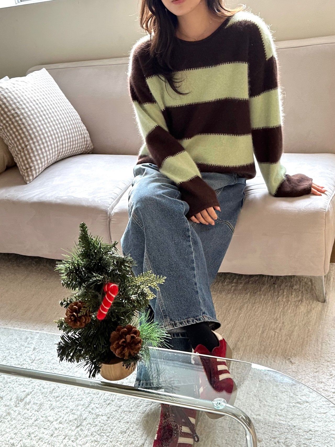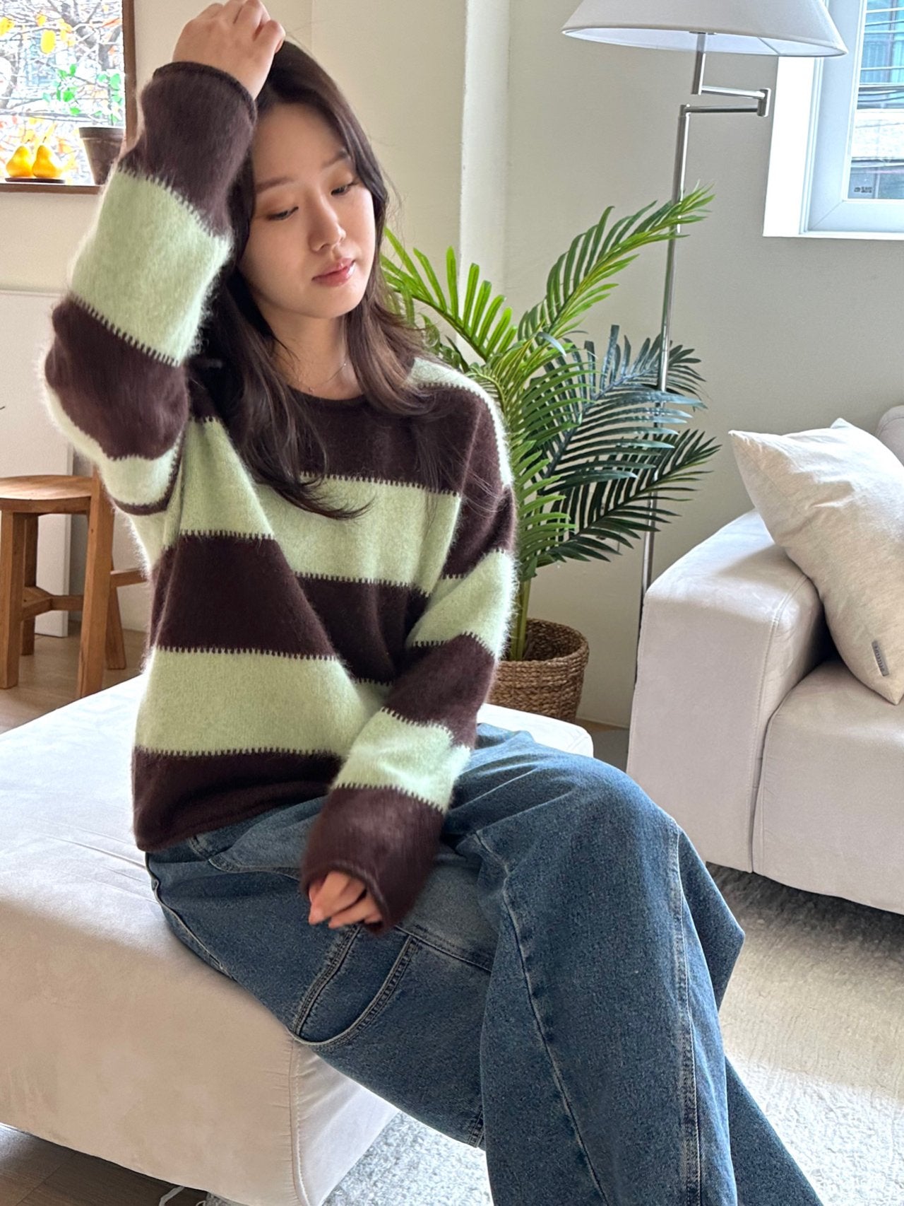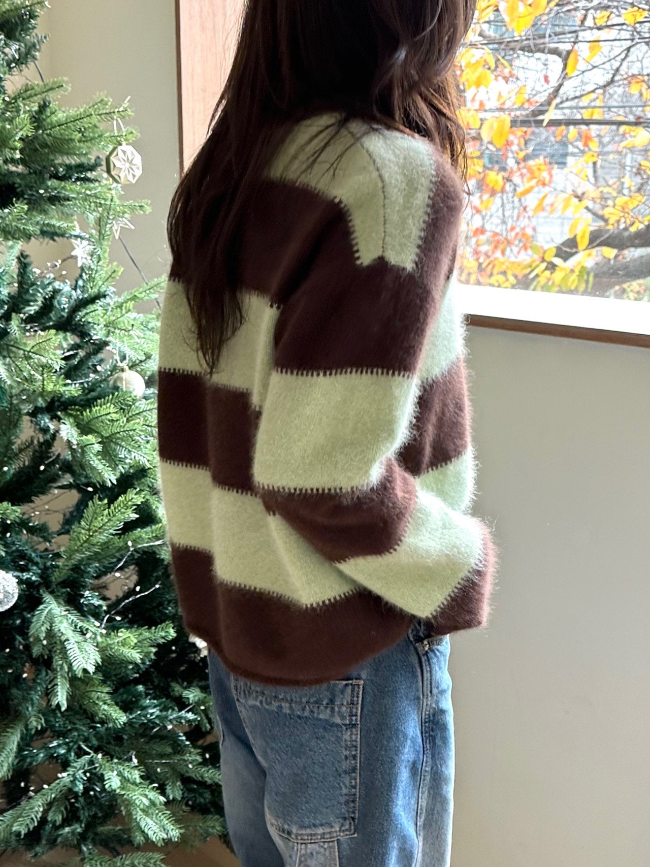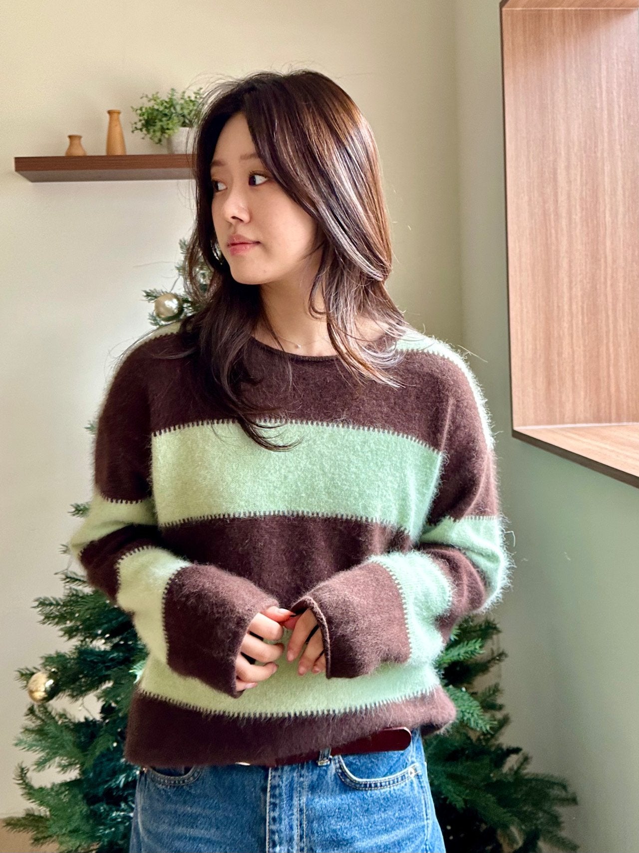 Fluffy Raccoon Stripe Sweater (PREORDER 20%OFF)