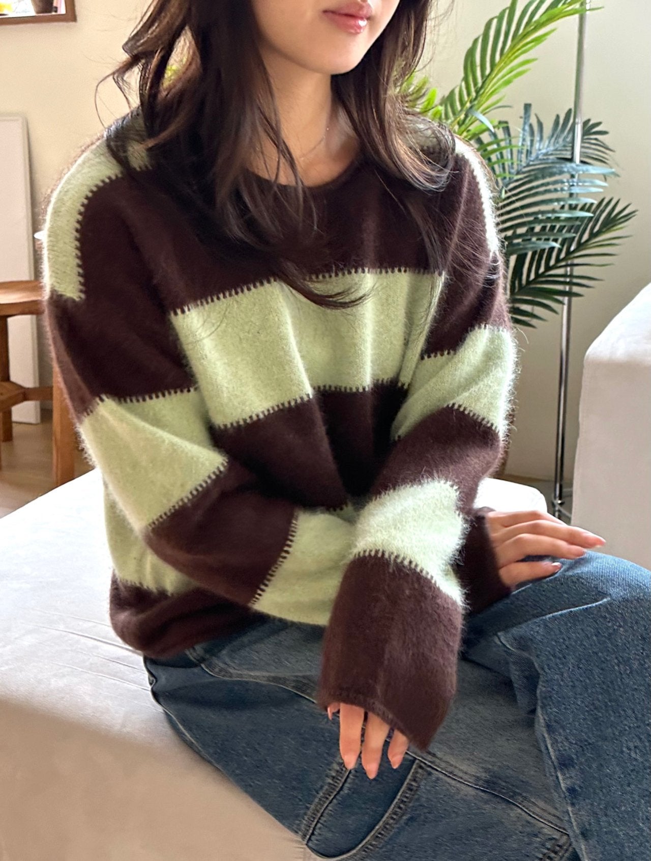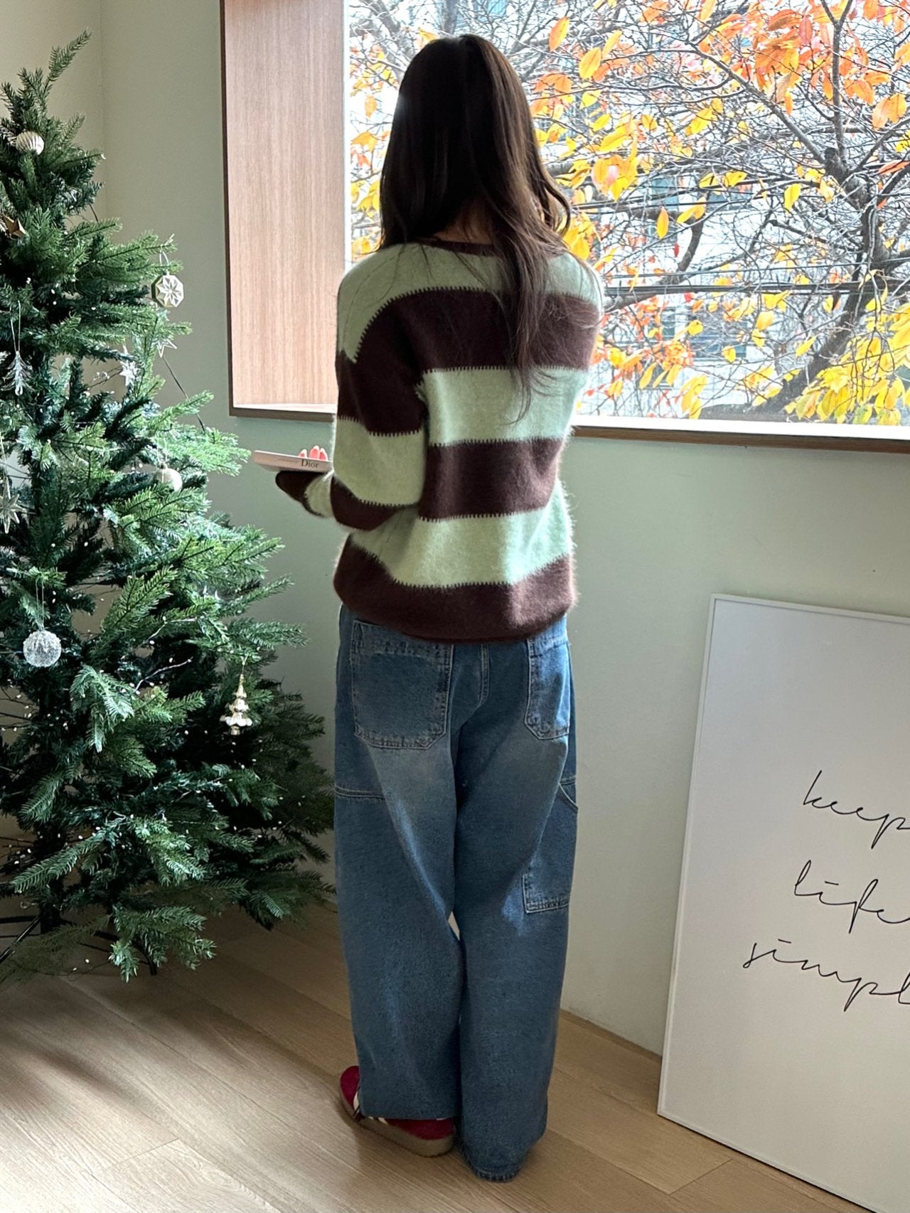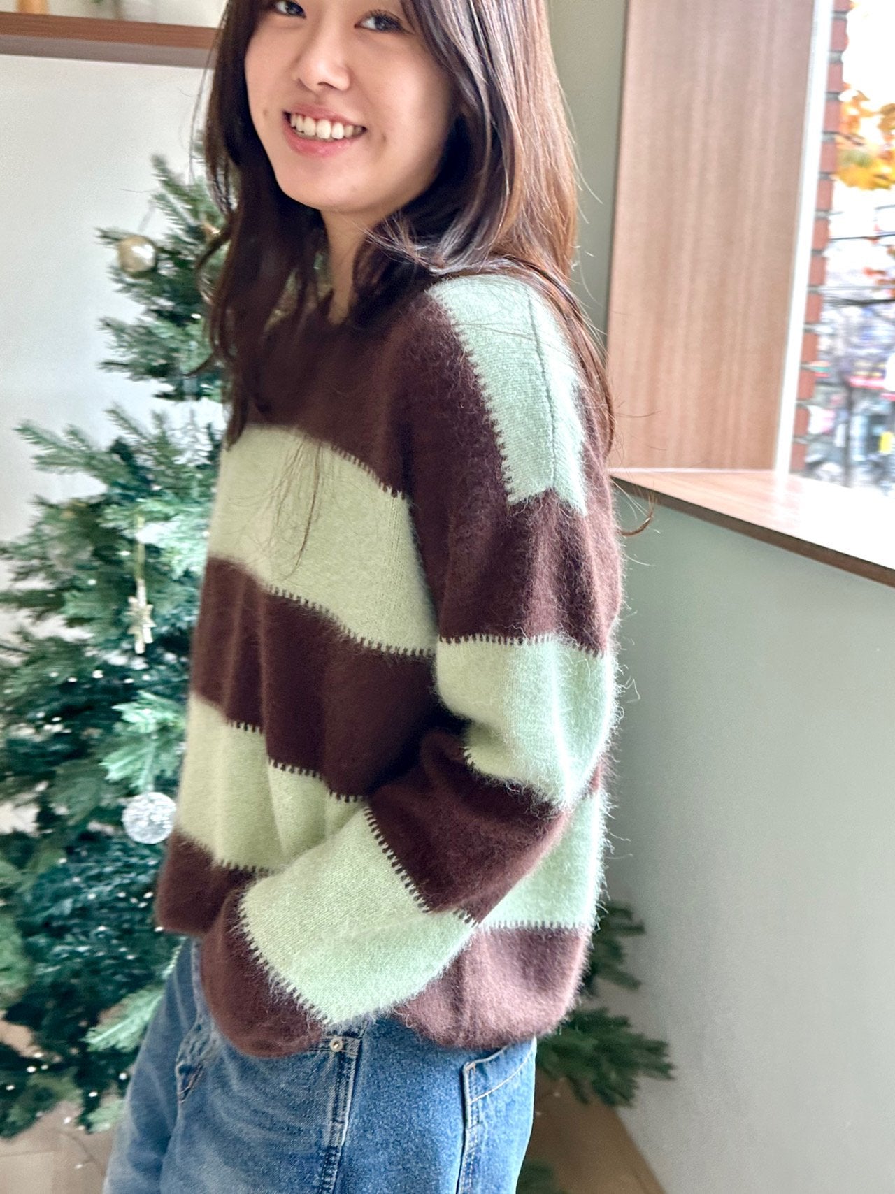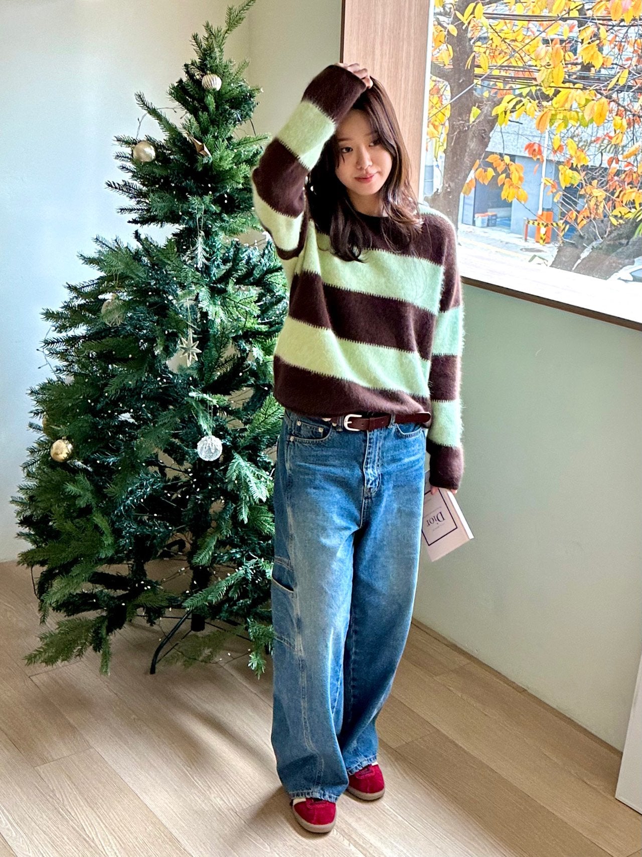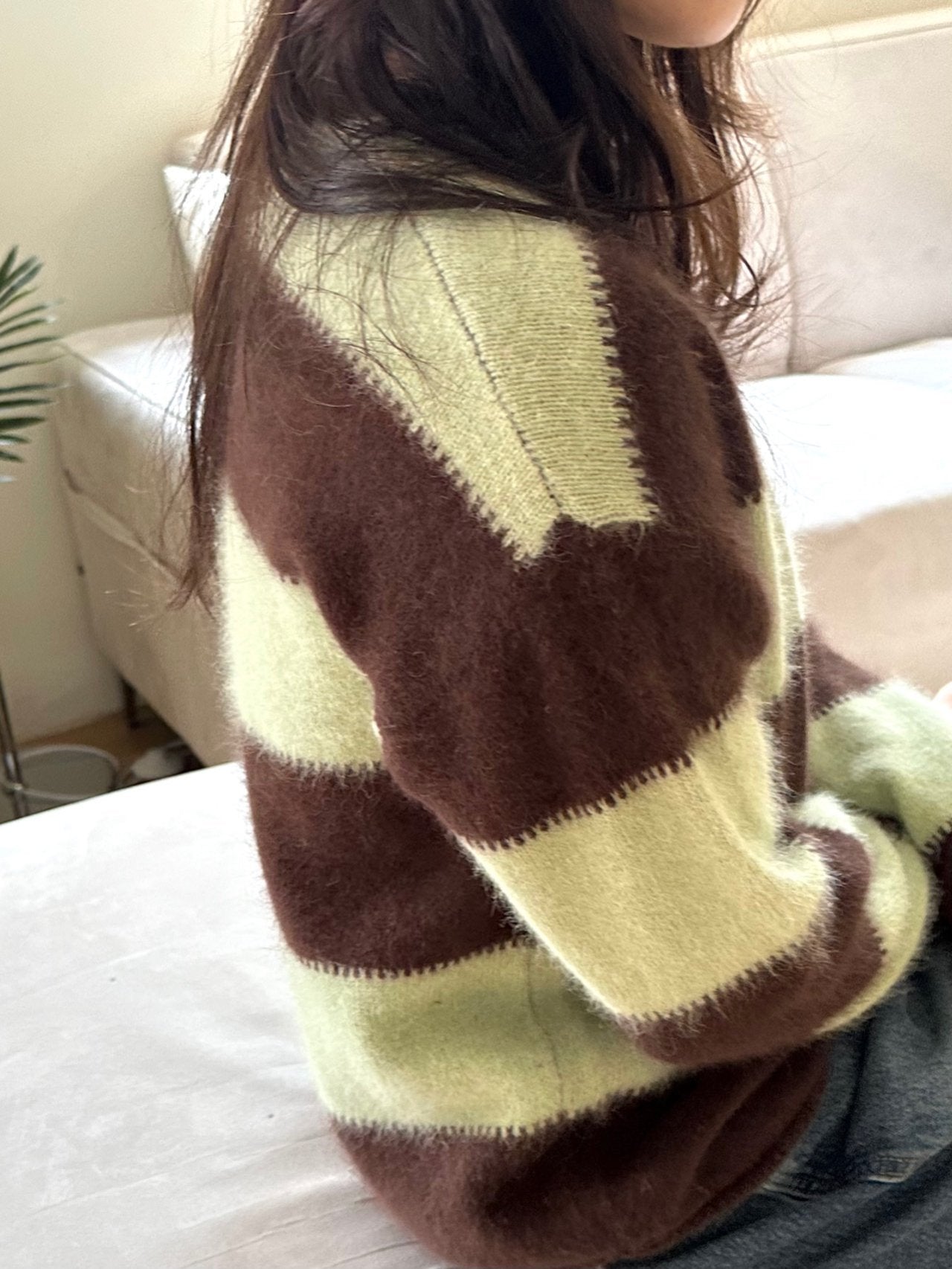 Fluffy Raccoon Stripe Sweater (PREORDER 20%OFF)
