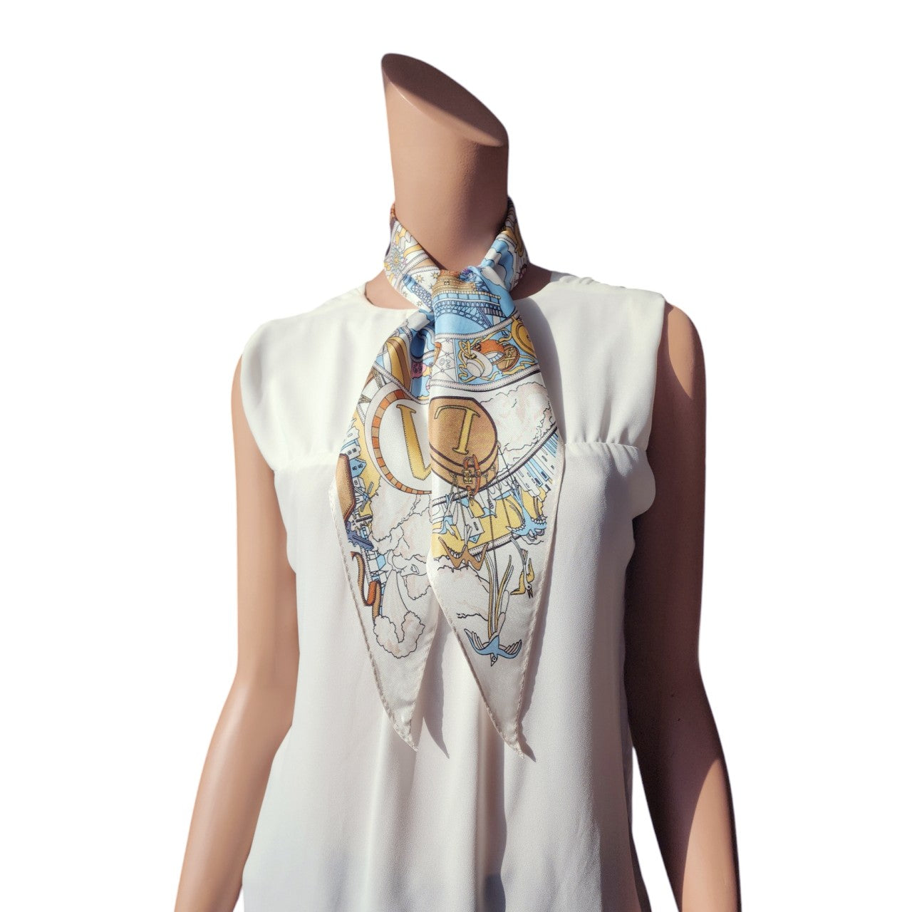 Inspired by a dreamy stroll through the streets of Paris, this mini rhombus scarf features an elegant print with subtle seasonal tones.