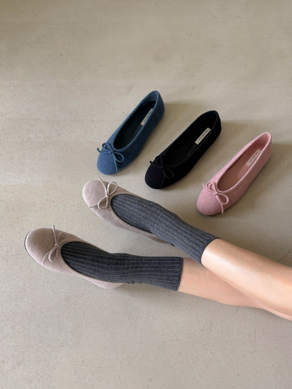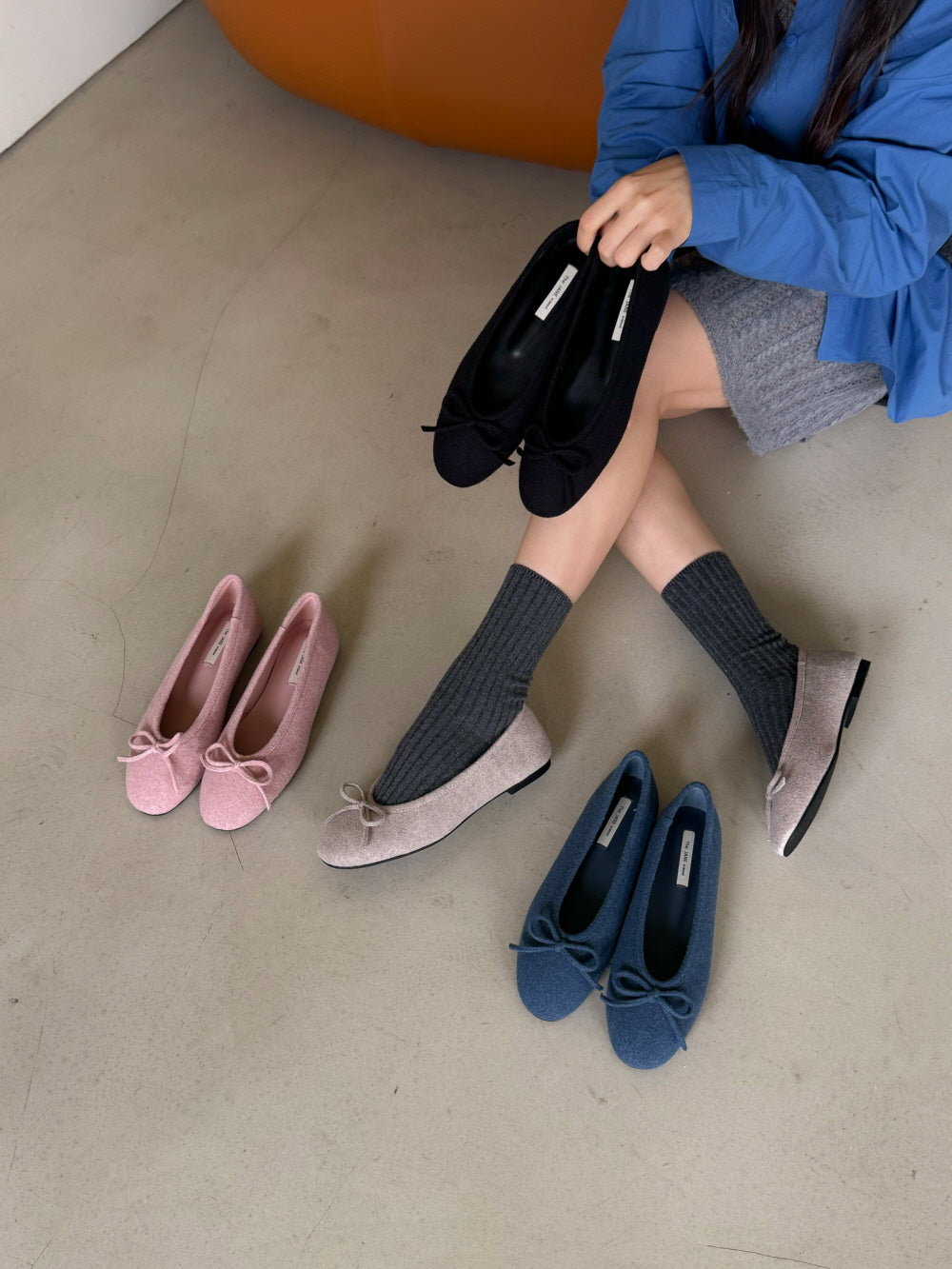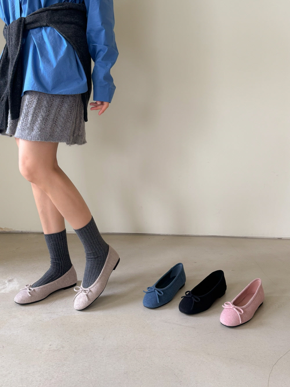 (Preorder) Wool Ribbon Ballet Flat Shoes (try-on available)