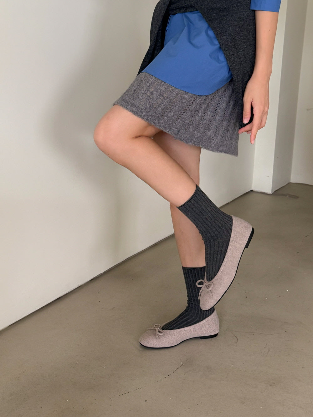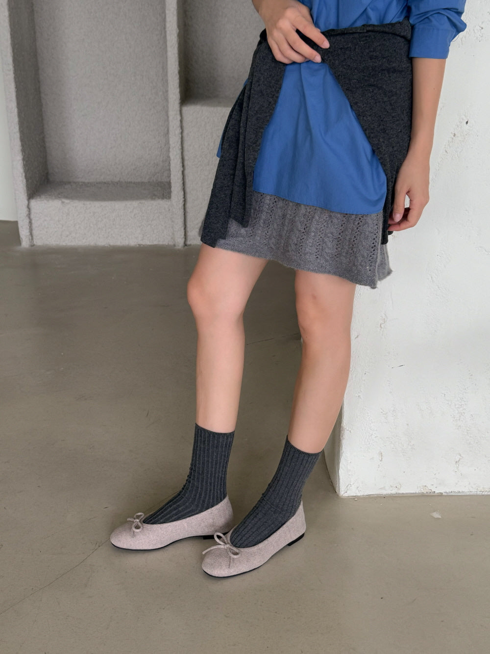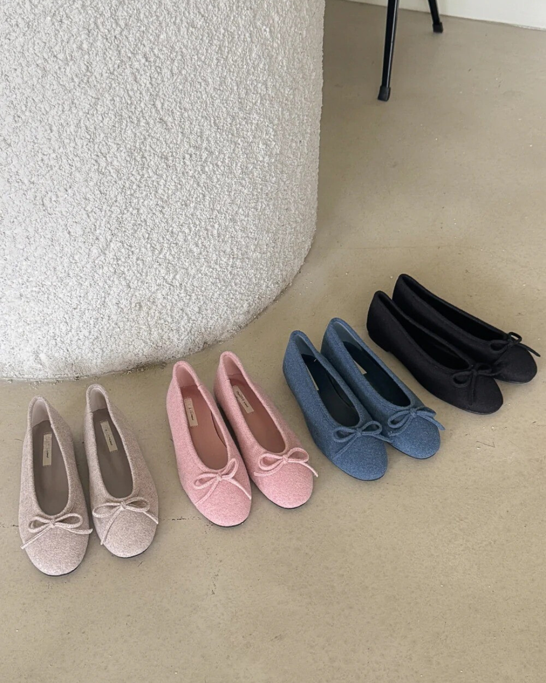 (Preorder) Wool Ribbon Ballet Flat Shoes (try-on available)